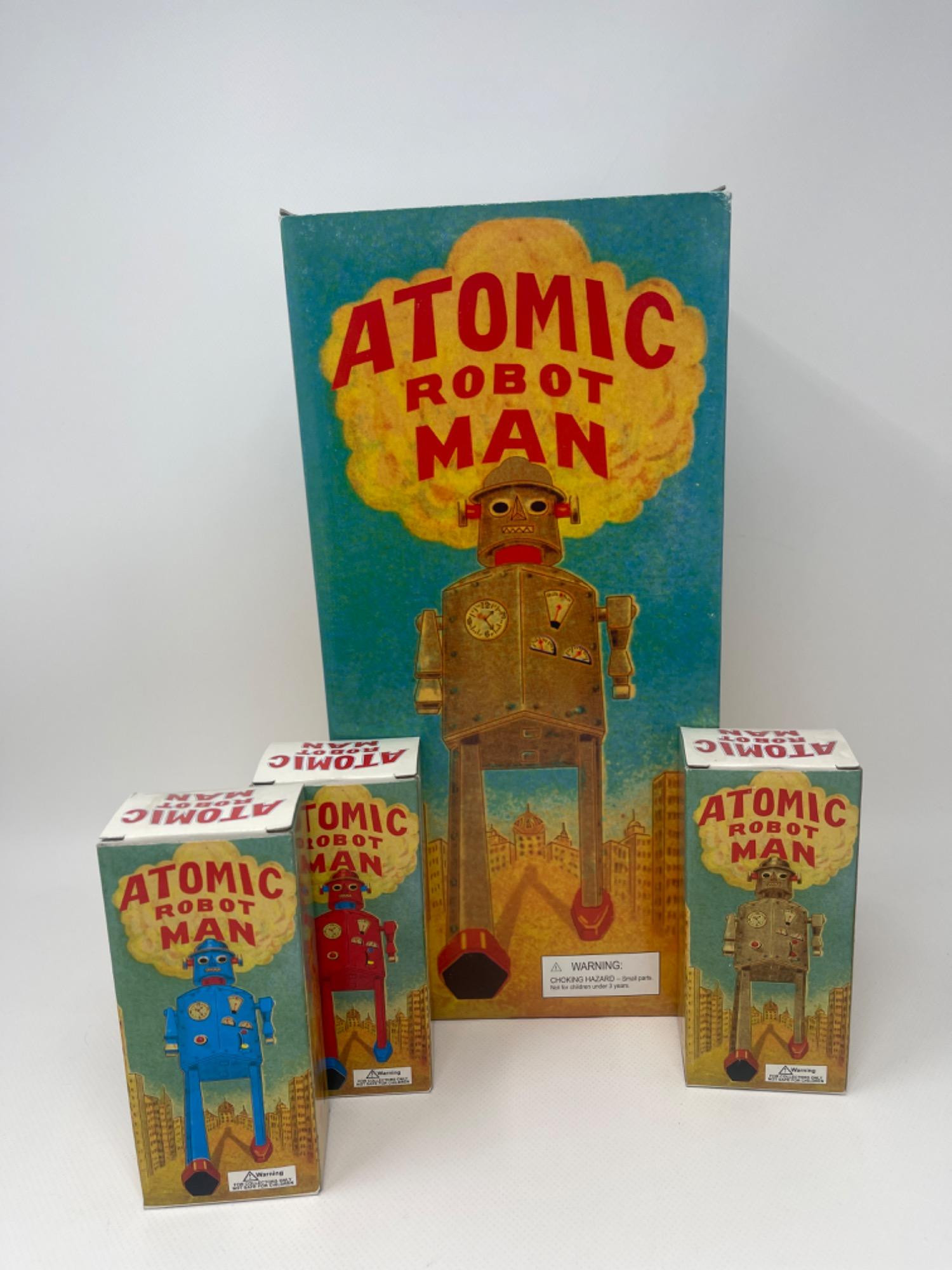 Lot # 42 - (4) Vintage Schylling Tin Wind Up Atomic Robot Man Robots