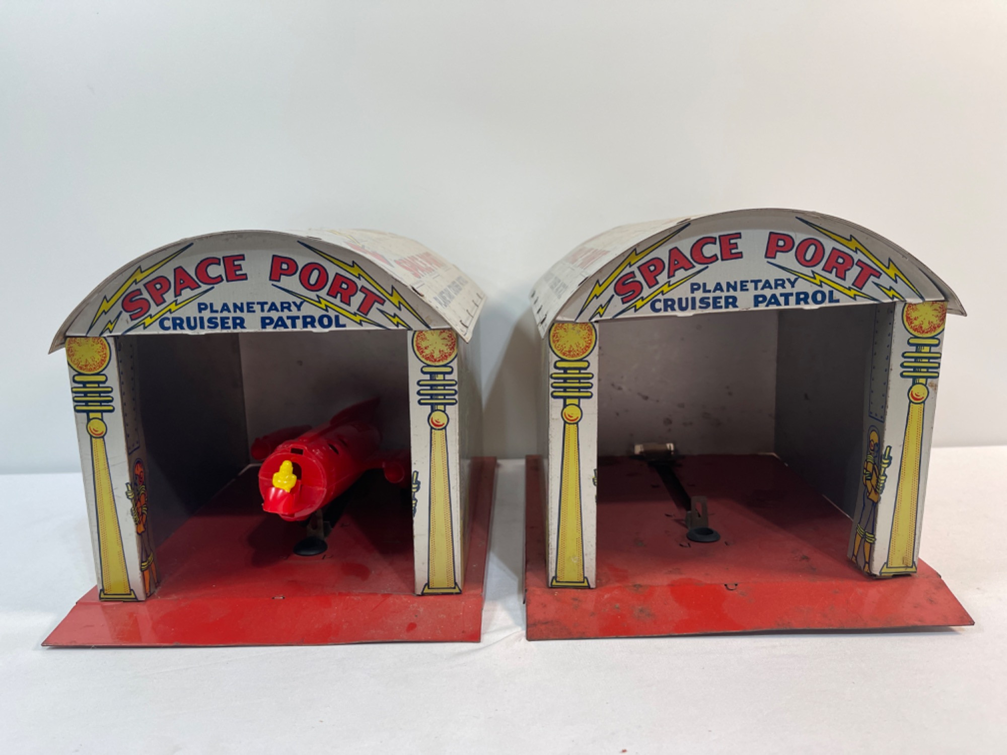 Lot # 68 - (1) COMPLETE Tin Space Port Planetary Cruiser Patrol & (1) With Missing Plane
