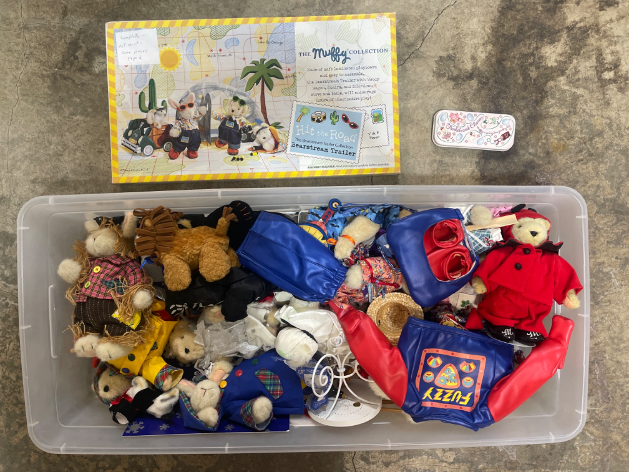 ENTIRE CONTENTS OF BOX NOT PHOTOGRAPHED VanderBears, VanderHares & The Muffy Collection + Trinkets & Charms Unknown completeness of The Muffy Collection & Trinkets box Plastic Container is 14” x 30”