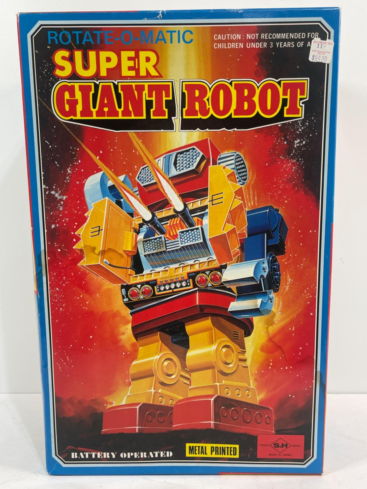 Vintage Horikawa Rotate-O-Matic SUPER Giant Robot 16 inches tall Great condition. Slight chrome loss to the robots claw. Box has some liquid damage. UNTESTED