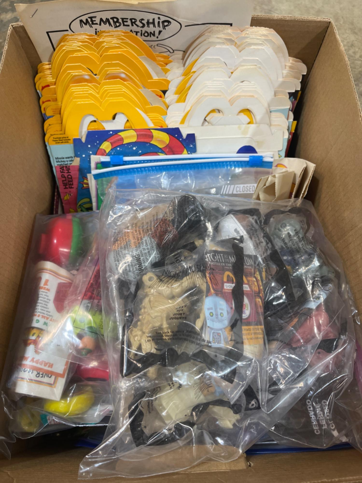 Lot # 136 - ENTIRE BOX of Vintage McDonald’s Toys, Extra Bags & Extra Boxes