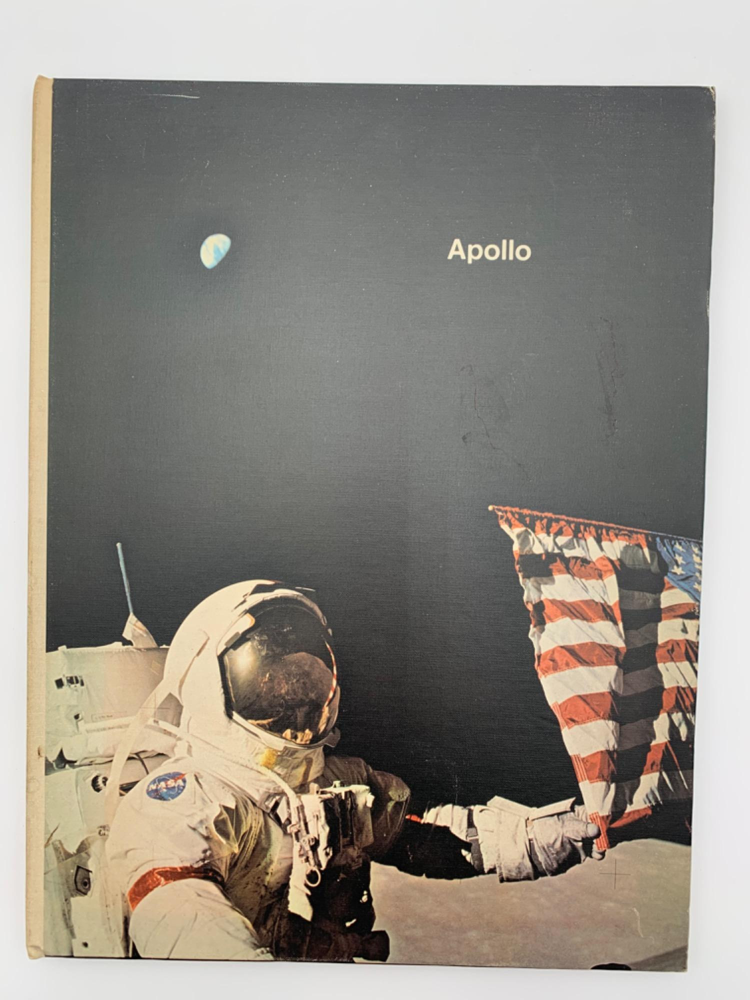 APOLLO by Russell E. Chappell. Hardcover. Signed on front flypage by Buzz Aldrin, Neil Armstrong, and Michael Collins. 1973, NASA EP-100 (Washington DC). 65 pages. Covers from late 1950s to Apollo 17 on last page .Note - this is a large format book - measures 14" H x 10.75" W. Appears to be in good used condition with a few signs of use on the covers - see photos to judge condition for yourself. Shipping available only through Fed Ex Pack & Ship