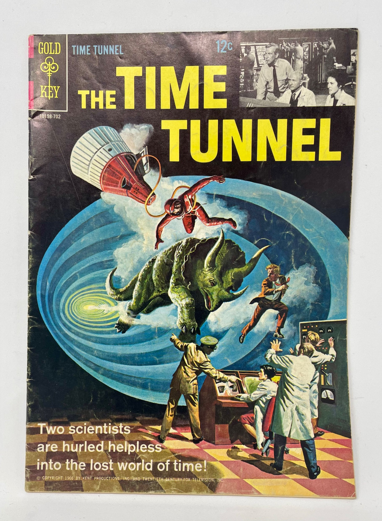 Rare Gold Key Comics' "The Time Tunnel" #1 comic book from 1967. Ties in with 1966 TV show of the same name! First issue. Some wear to spine (see photo), but otherwise in good used condition.