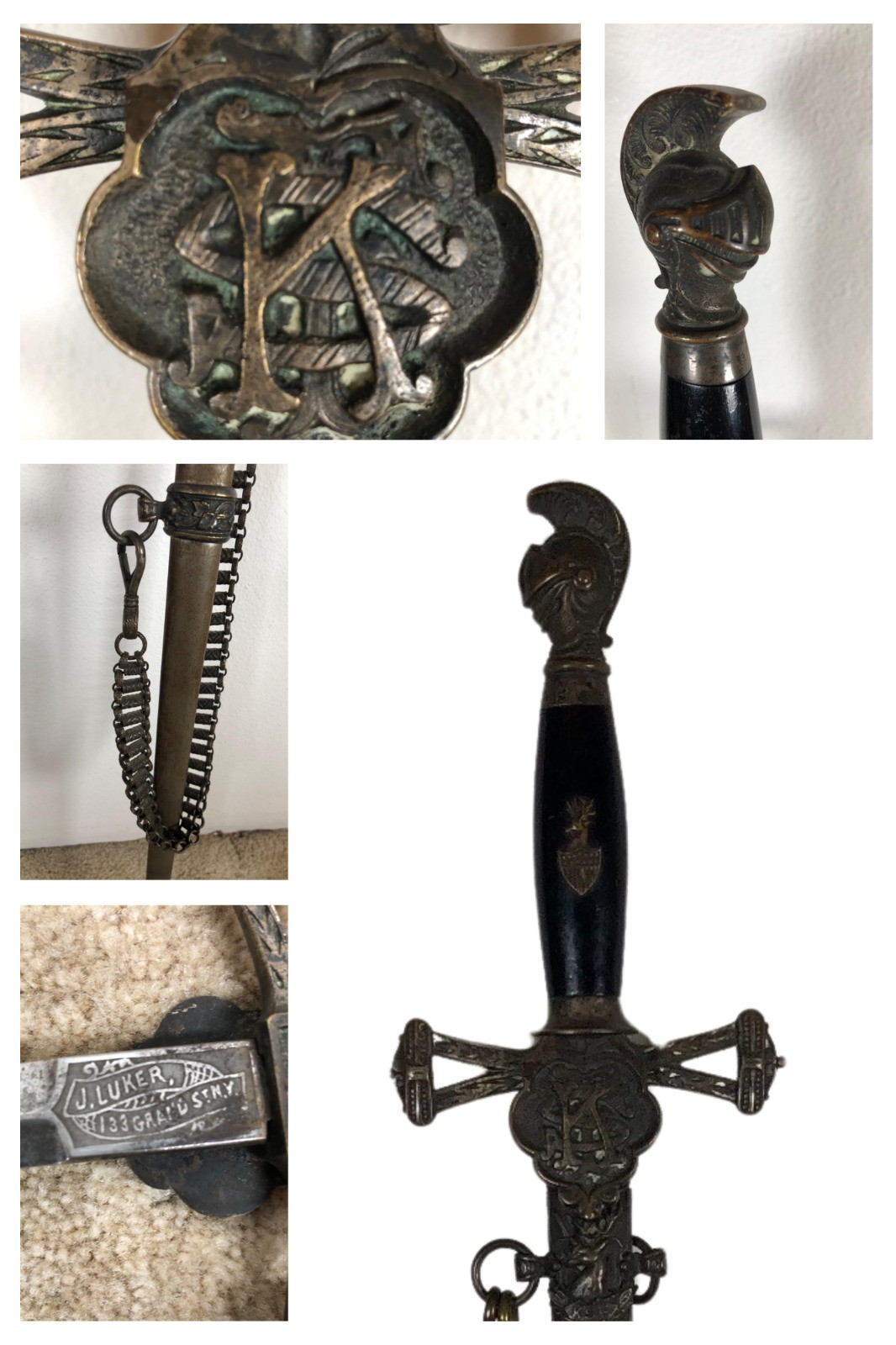 J. Luker 19th Century Knights Templar Masonic Sword Authentic and Hand Crafted Includes both Sword and Sword Sheath Total length 36 inches Hand crafted in 1860's - 1870's by the famous sword crafter "James Luker" in New York
