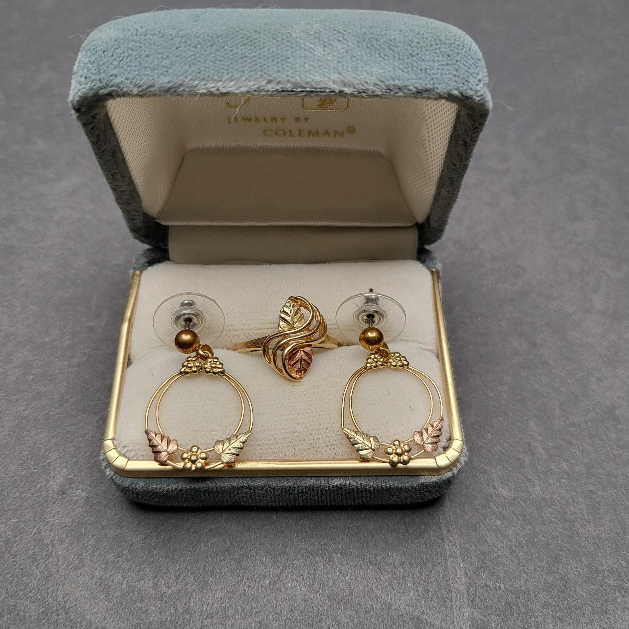 Lot # 38 - 10k Black Hills Gold Ring and Earrings by Coleman Company