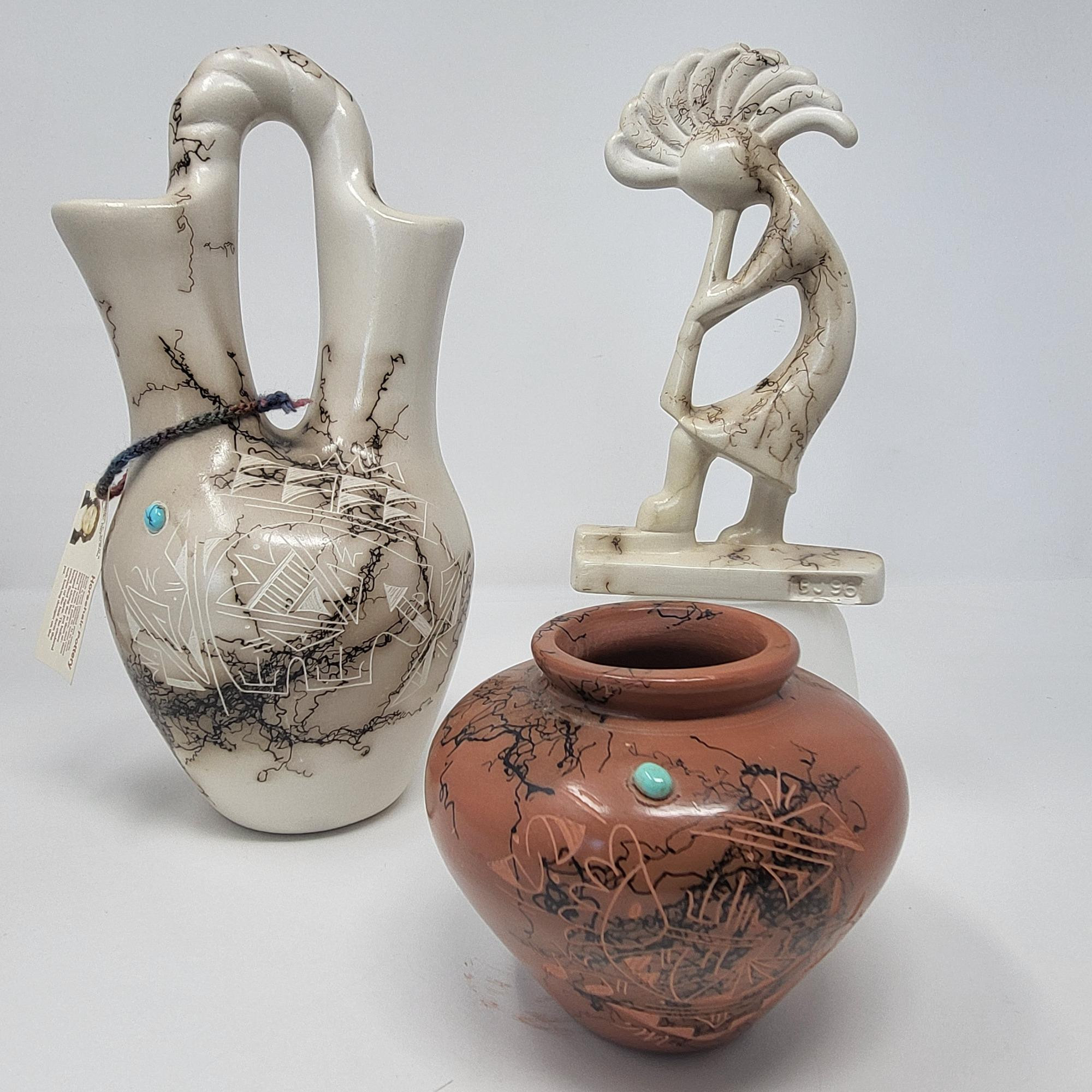Lot # 48 - Authentic Horsehair Pottery Vases & Figure - Vail & Jamison