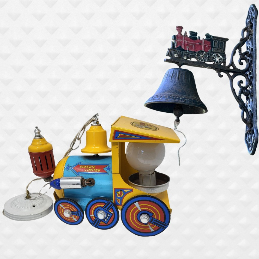 Lot # 79 - 1960's Kenroy Speedie Train Ceiling Light & Outdoor Iron Train Bell
