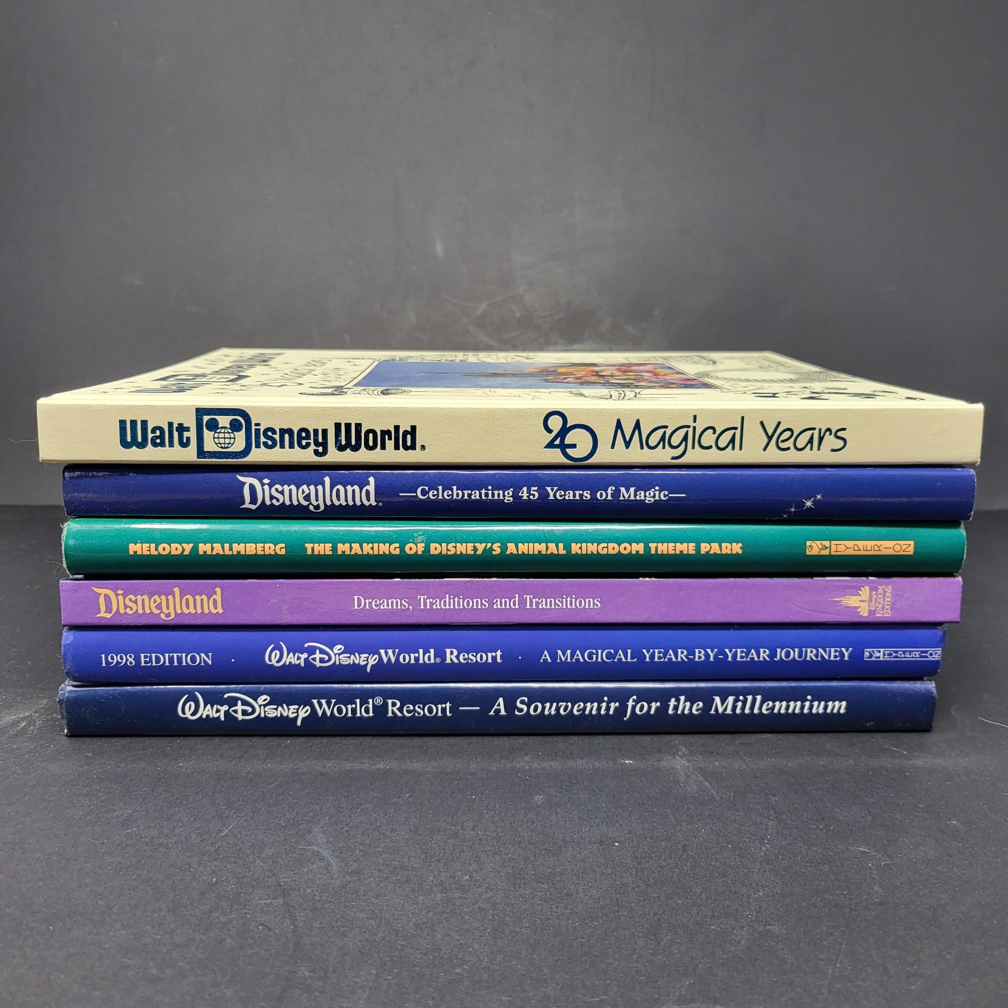 Walt Disney World and Disneyland Anniversary and Annual Resort and Theme Park hardback books. There are 6 total.