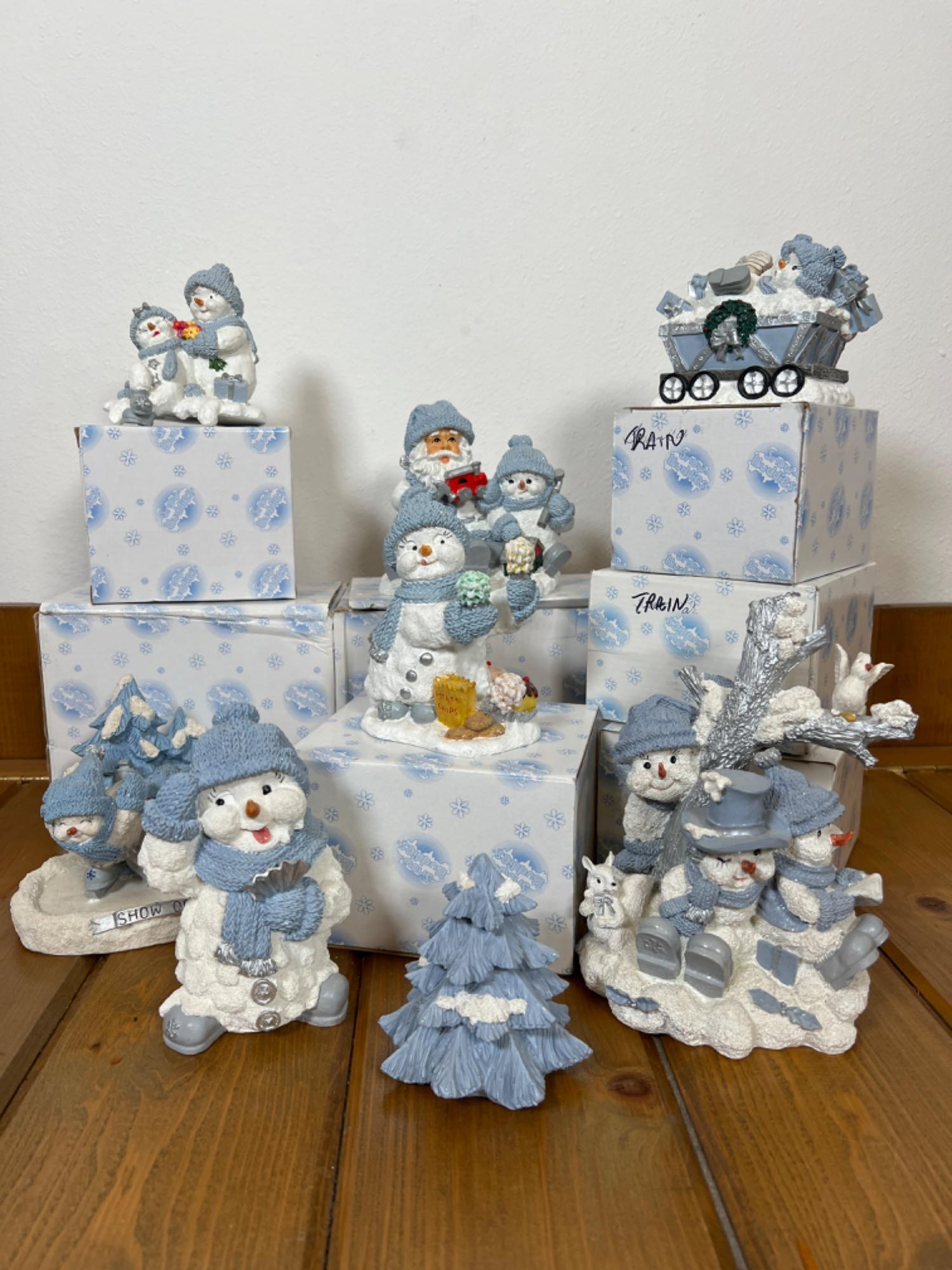 16 Snow Buddie Snowmwn Figures by The Encore Group. Some with boxes and four without boxes. These are collectible with each having its own name and number. Figures range from 3” tall to 6” tall.