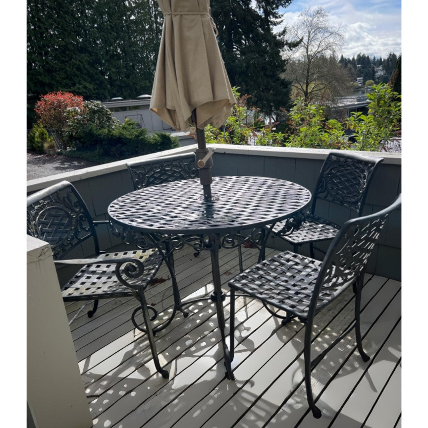 Lot # 1 - Wrought Iron Patio Set with 4 Chairs & Umbrella