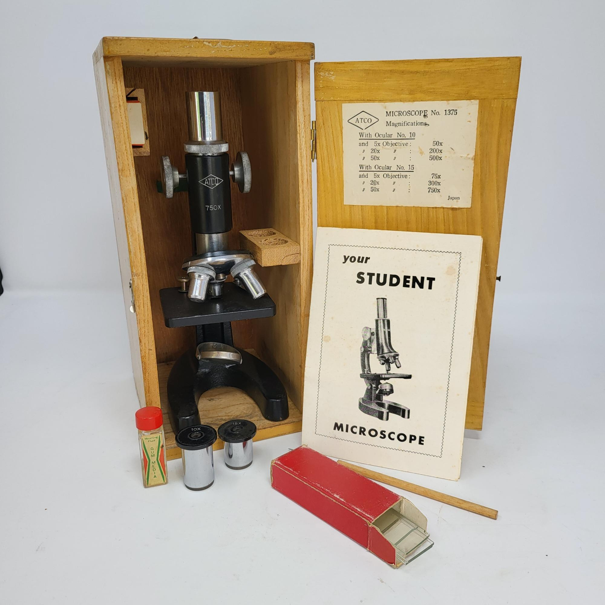 Lot # 177 - Vintage Atco Student Microscope No.1375 Wood Storage Box