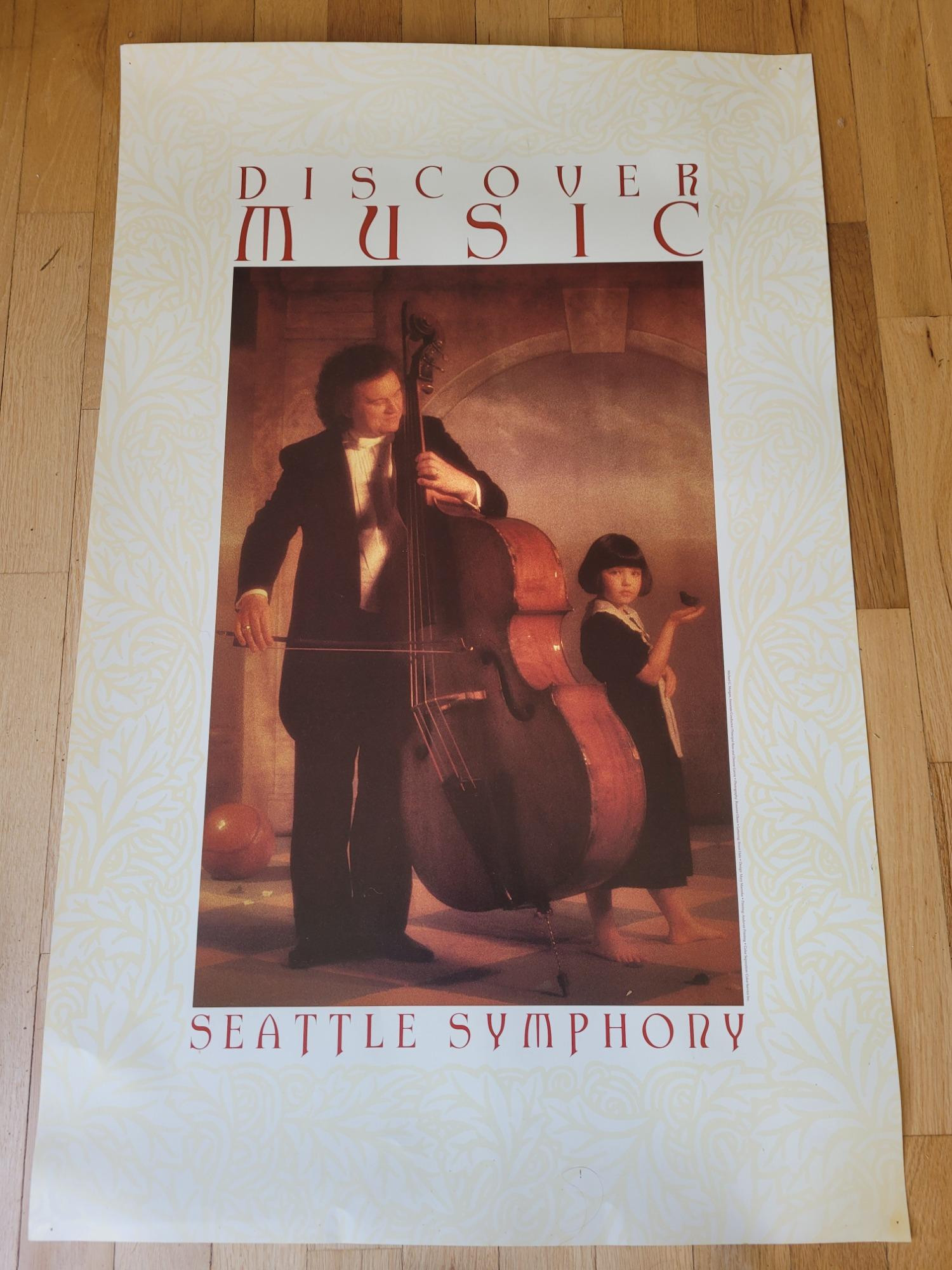 Discover Music Seattle Symphony poster -possibly Perlman(?) as cellist. Bring a piece of Seattle Symphony history into your home, music studio or music classroom to share this man's passion for music. Perlman is known as a reigning virtuoso of the violin and also played cello. An inspirational poster for a violinist.