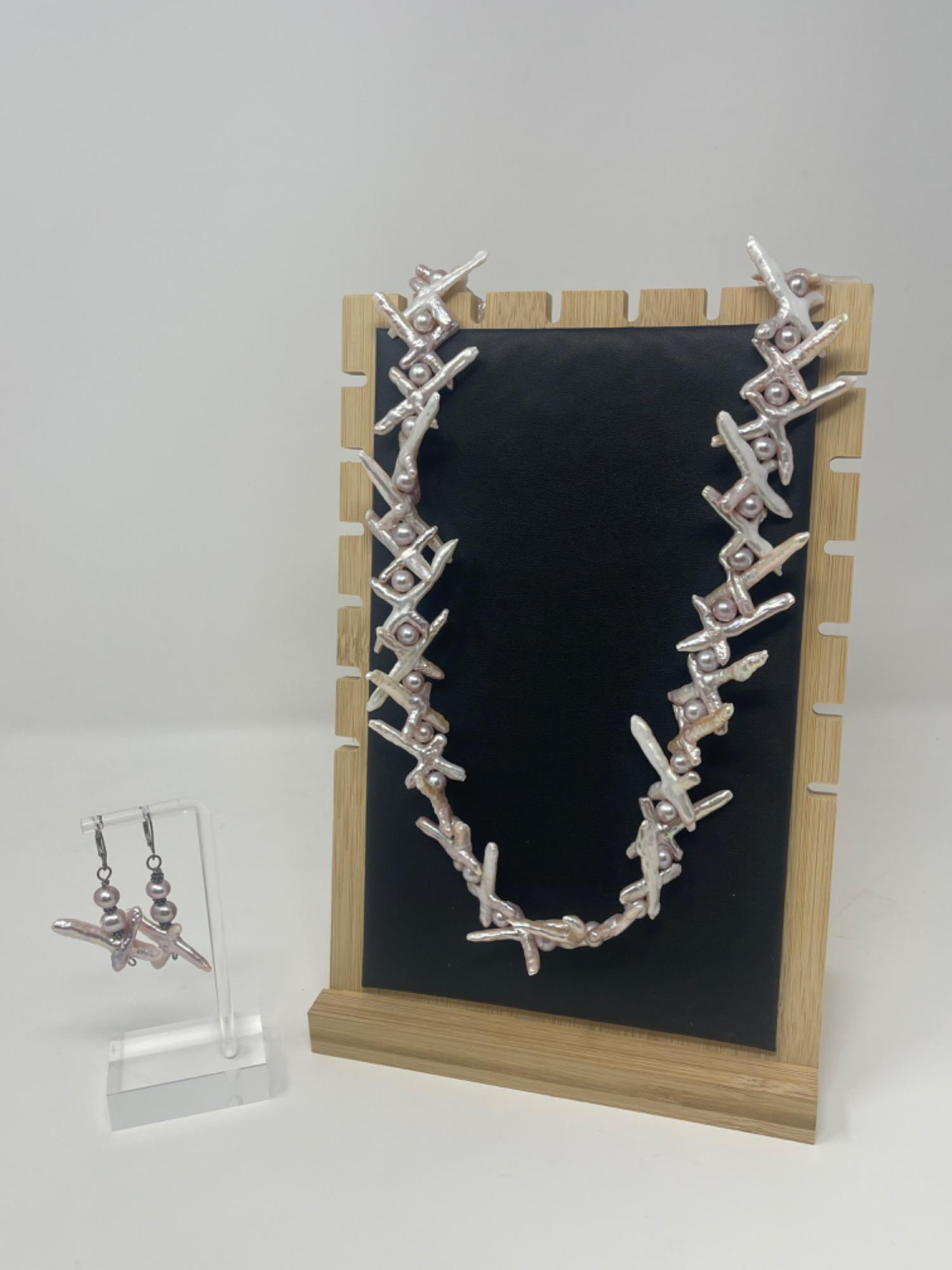 Verified by jeweler Necklace: - 116g - 28 inches long Earrings: - 8g together - 2 inches long with clasp Displays NOT included