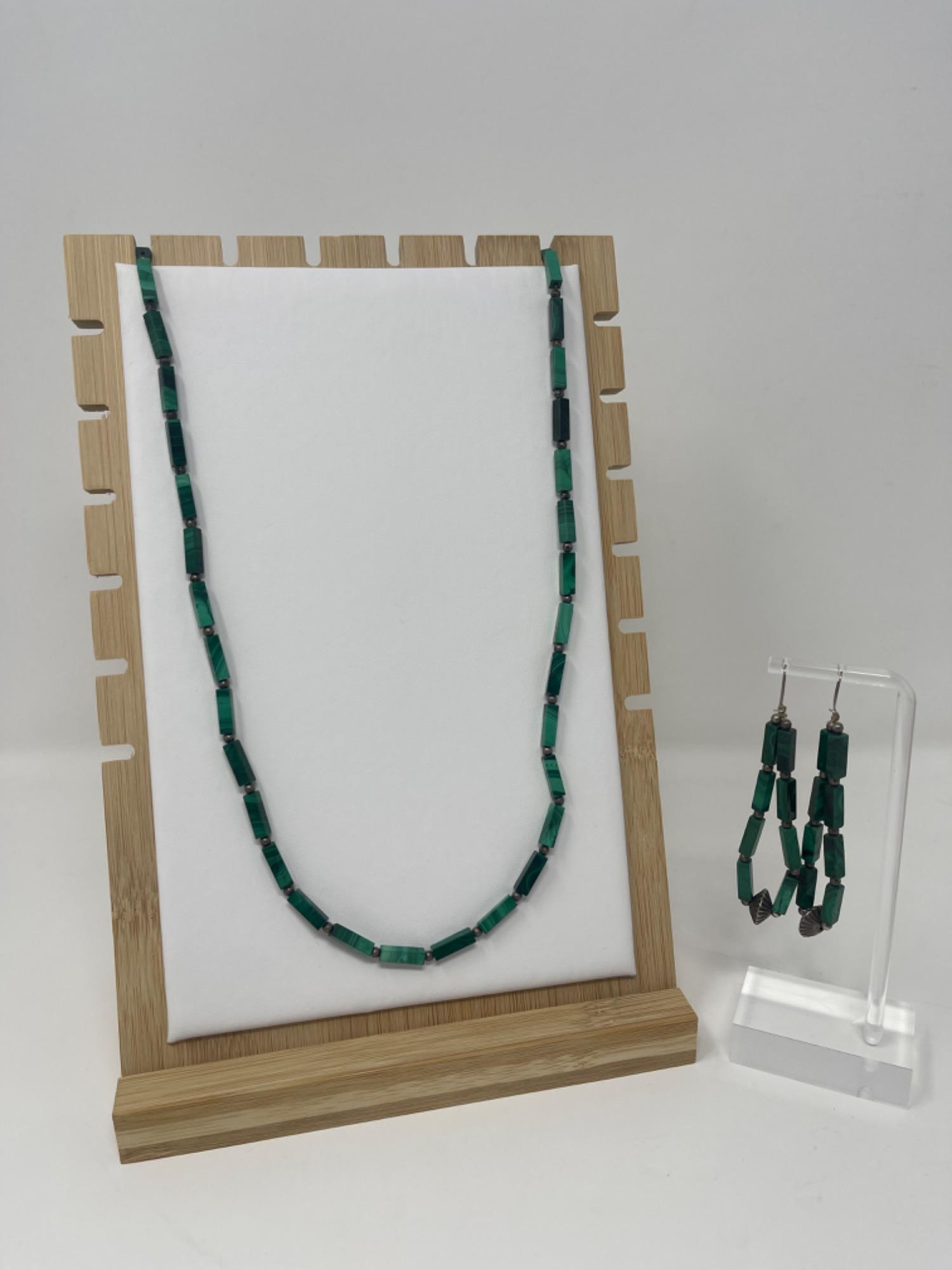 Lot # 21 - Vintage Green Rectangular Beads Necklace & Earrings