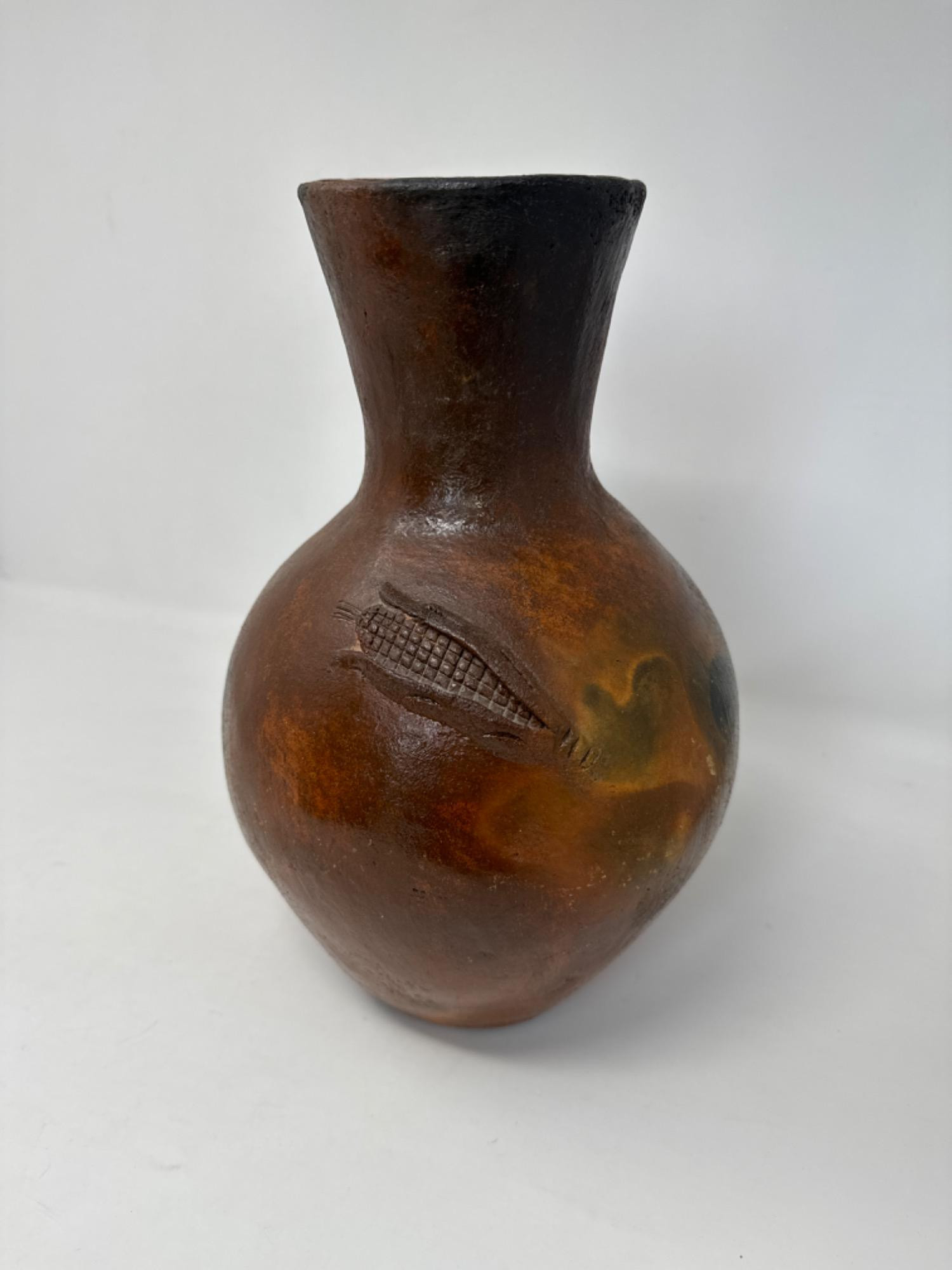 Lot # 20 - Indigenous Style Coil Pottery Corn Husk Pitcher (J. Addison)
