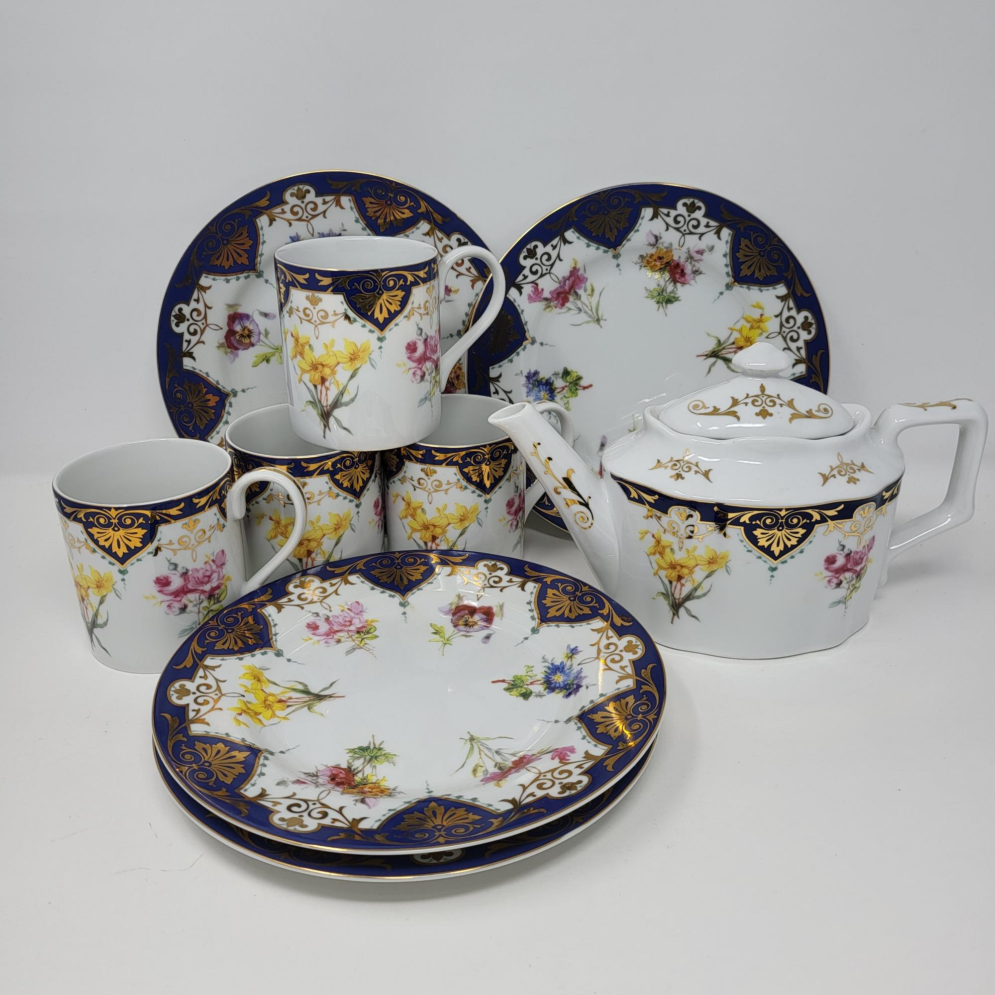 The Vanderbilt Service: Andrea by Sadek. Blue and gold trim with floral pattern. [PP]