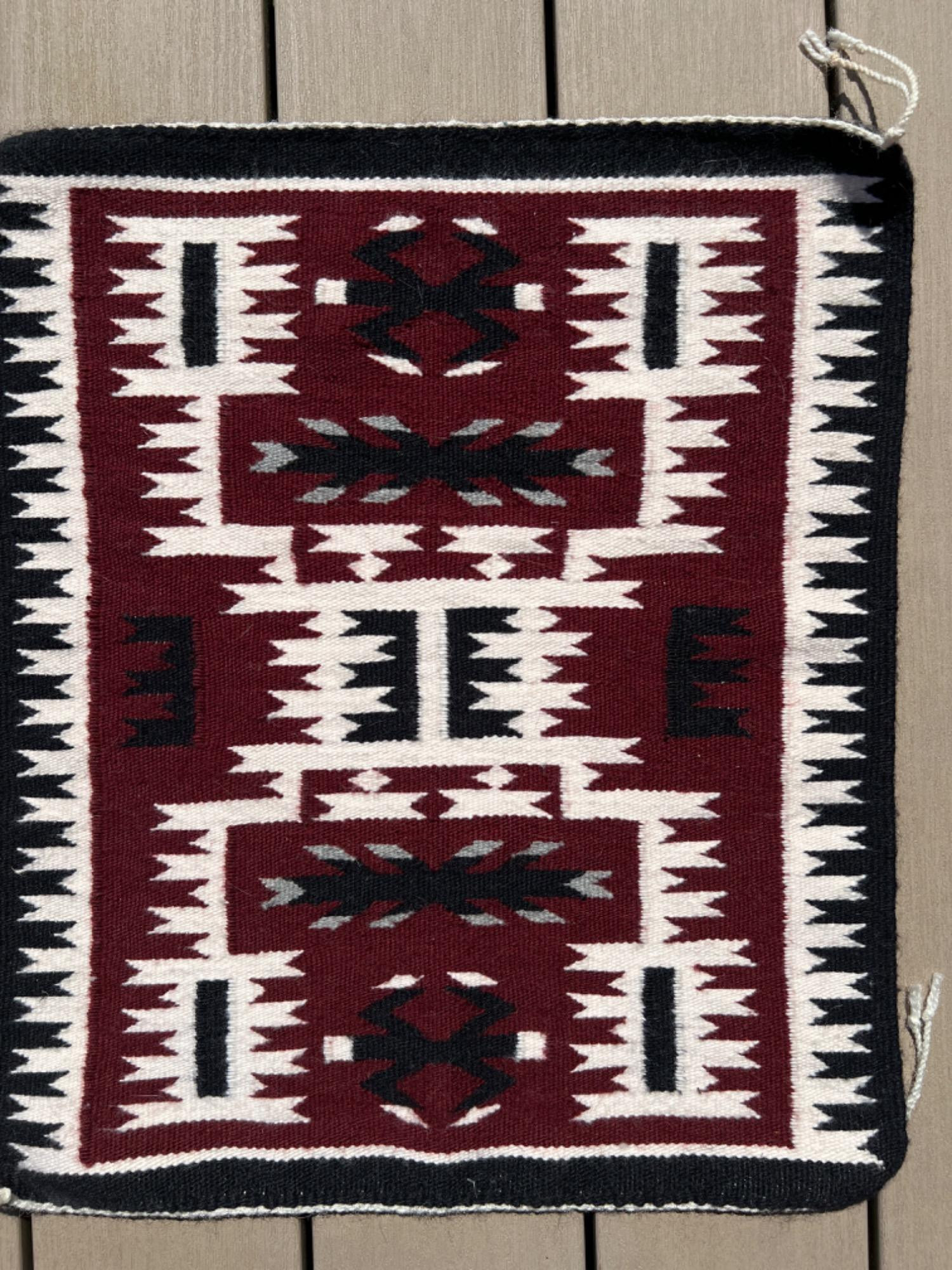 Melinda Bede handwoven rug purchased from Southwest Silver in Kirkland, Washington, 2007. Size: 19" x 22". Cost at purchase $184.