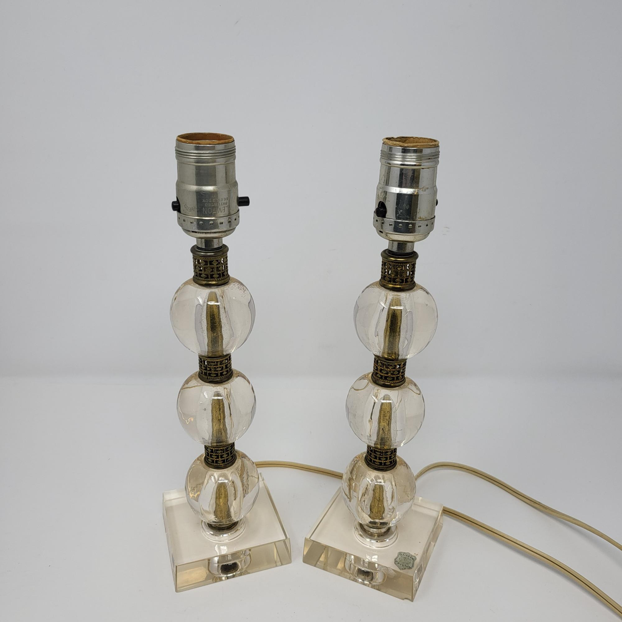 Lot # 147 - MCM Davfin Hand Cut Bubble Crystal & Brass Desk Lamps