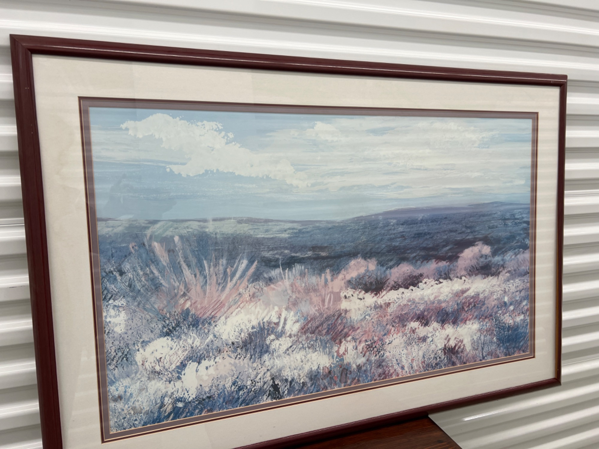 Lot # 171 - Vintage Pink Fields Picture in Cherry Wood Frame