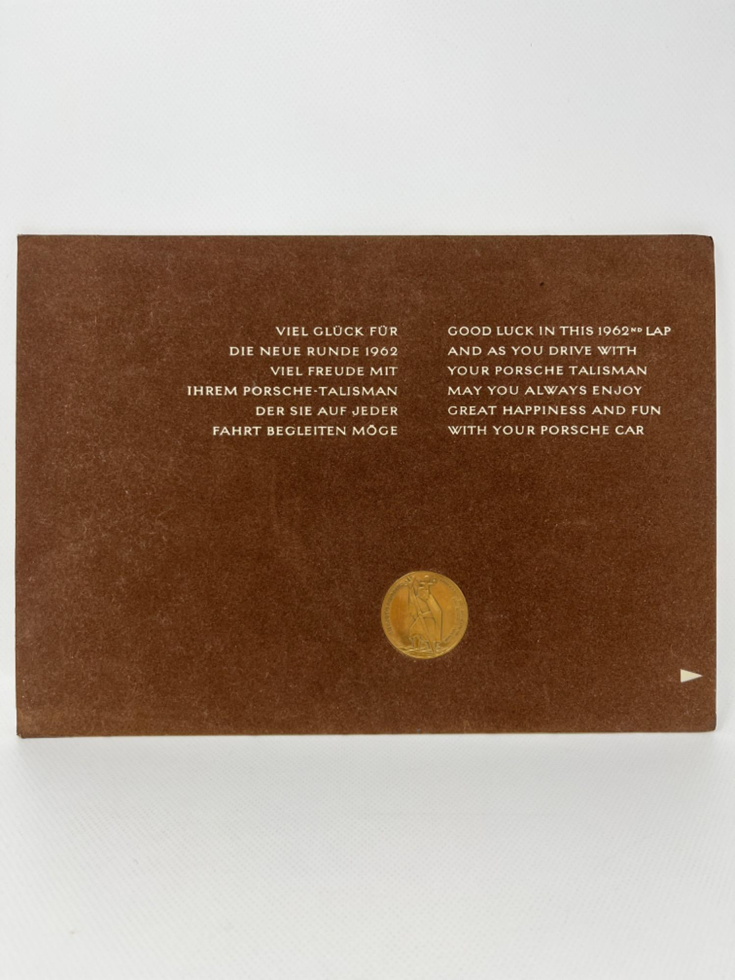 Own a Piece of Porsche History! A Rare 1962 Christophorus Medallion in Original Inscribed Holder. This iconic medallion marks the inception of the renowned Christophorus series, a symbol of Porsche's legacy. Comes in its original holder, which makes this a RARE find. Christophorus, Porsche's esteemed in-house magazine, stands as a testament to the brand's enduring prestige. Card measures: 12.5 in x 9 in
