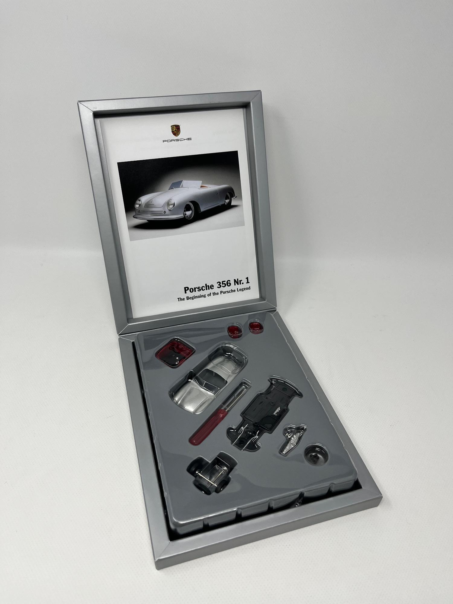 New in Box Porsche 356 Roadster Nr. 1 - Model of the First Porsche 1/43 scale model kit – Made by Porsche (Thavus) Still in all the original boxes and packaging.
