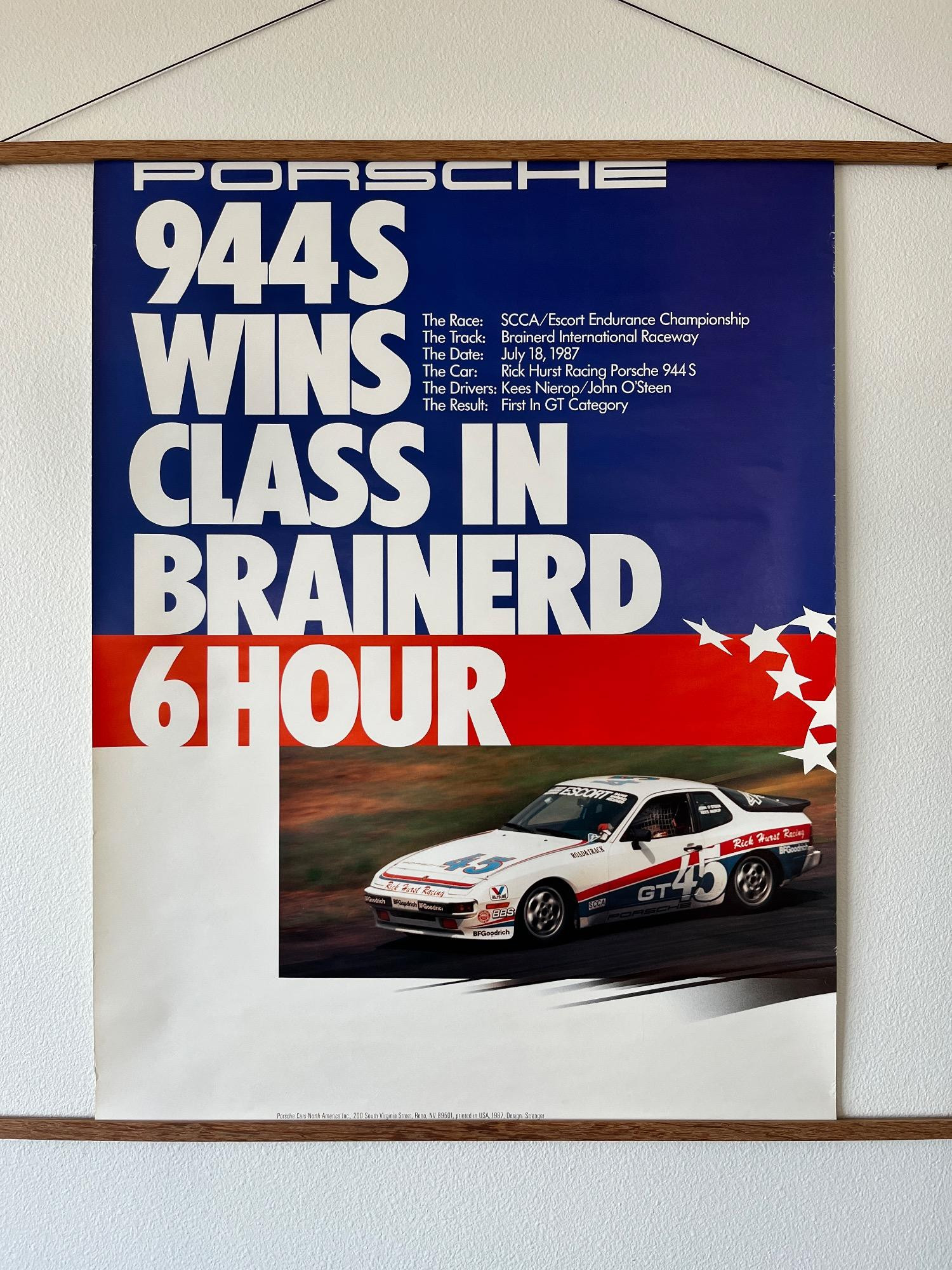 1987 Porsche Factory Poster 944 S Brainerd 6 H Nierop GT Class Win Good condition. Has minor creases on the sides/edges Measures: 29.75" x 40"