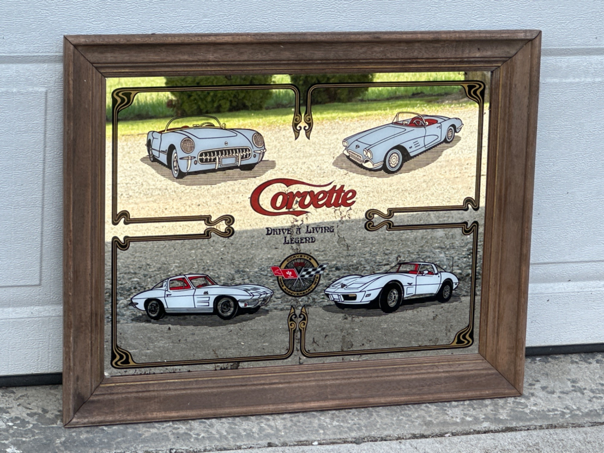 Lot # 13 - Vintage Corvette Wood Framed Mirror