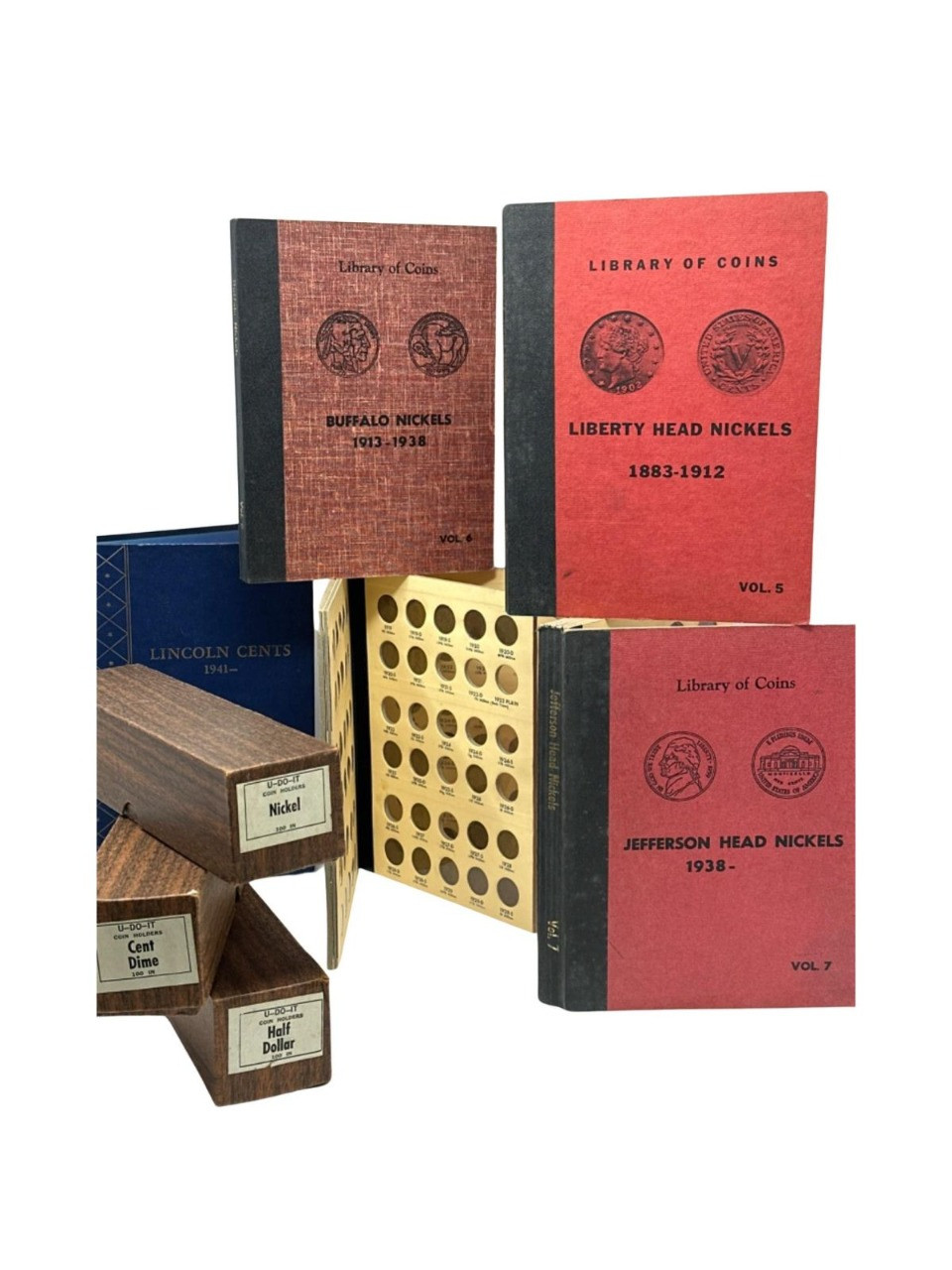 Vintage & Older "Library of Coins" Pennies, Nickels (not all slots are full, please note photos for more details)