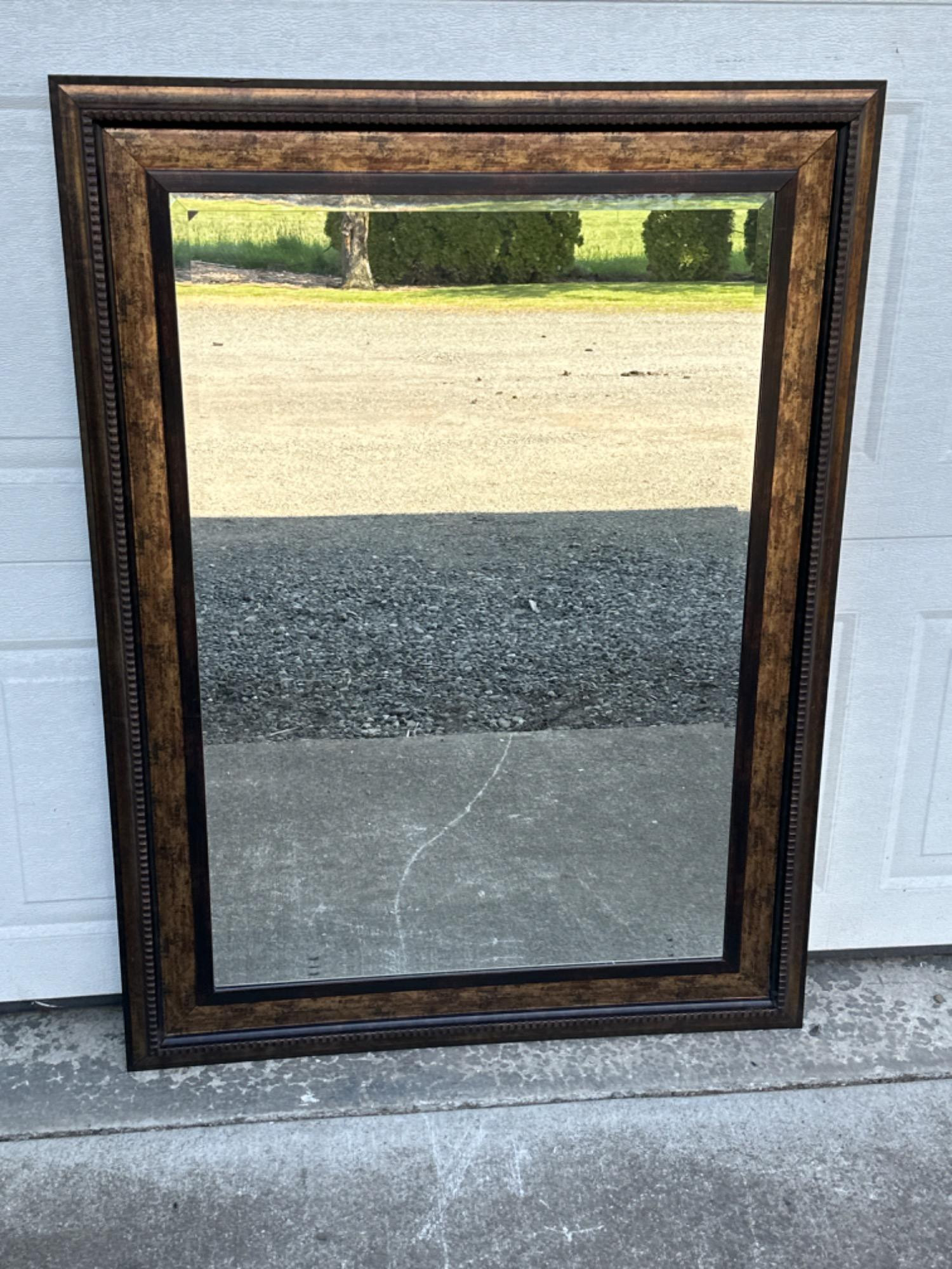 The beveled mirror measurements are 46 1/2 inches wide 34 1/2 inches tall