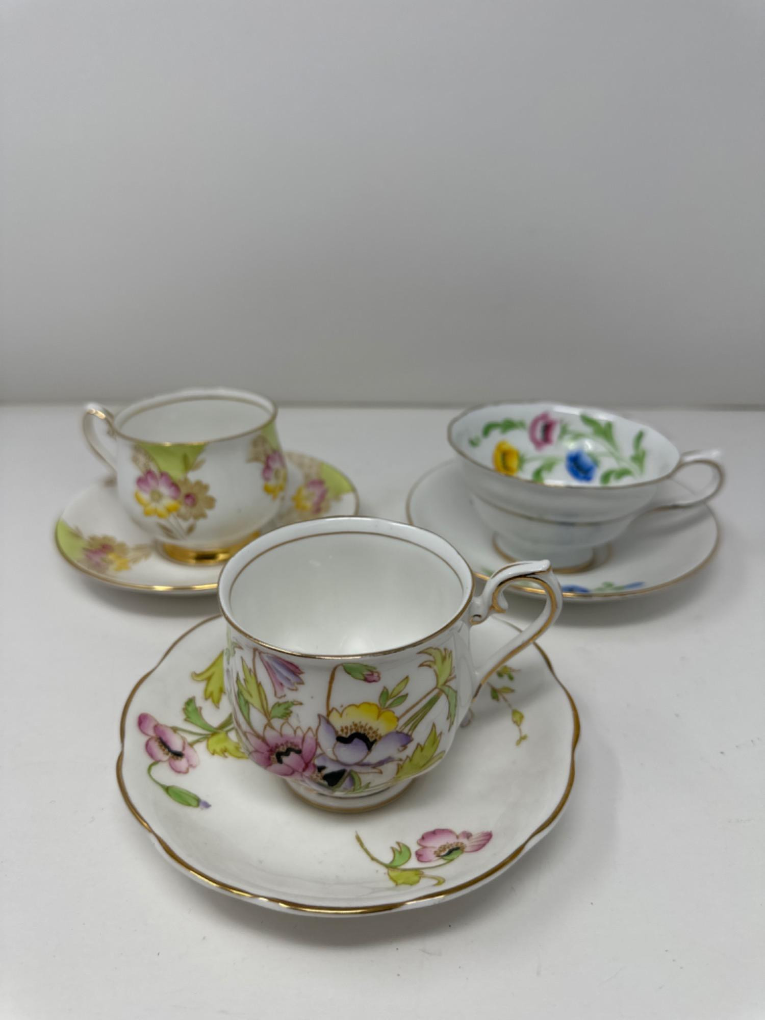 (3) Tea cups & Saucers-