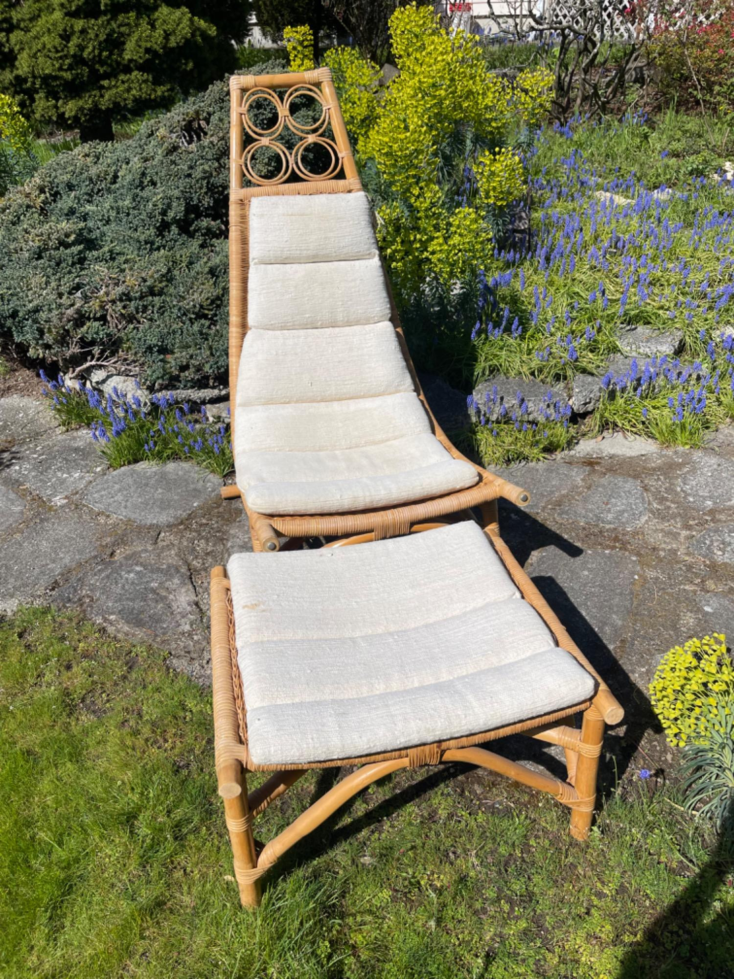 Lot # 2 - Vintage Rattan Sloped Chair and Ottoman