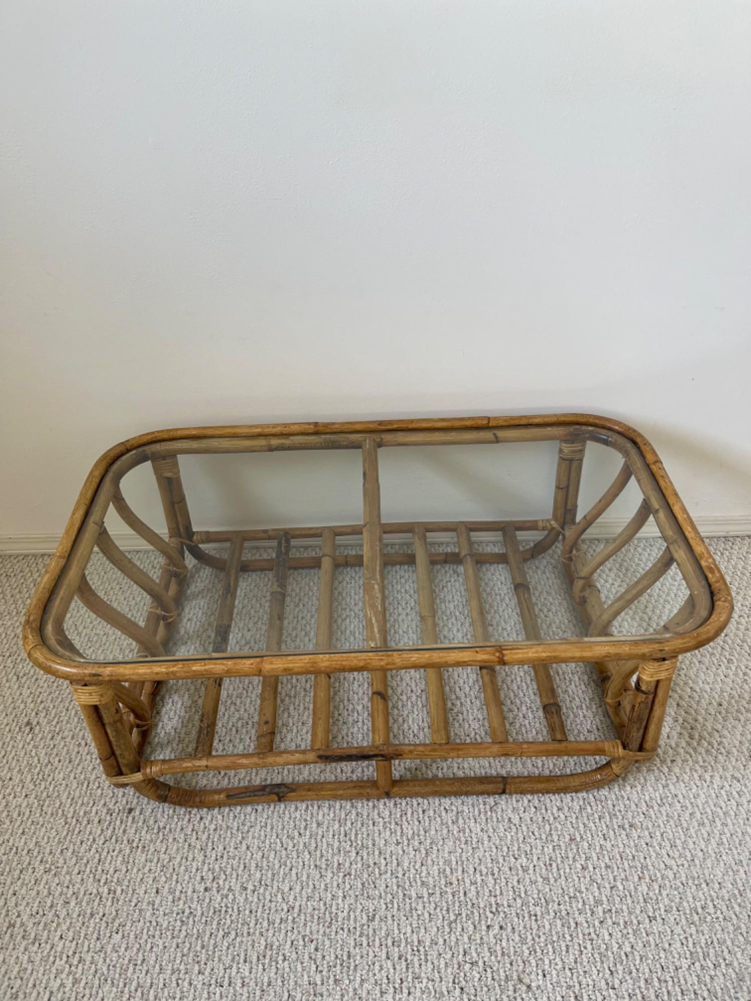 Lot # 70 - Vintage Rattan Glass Top Coffee Table
