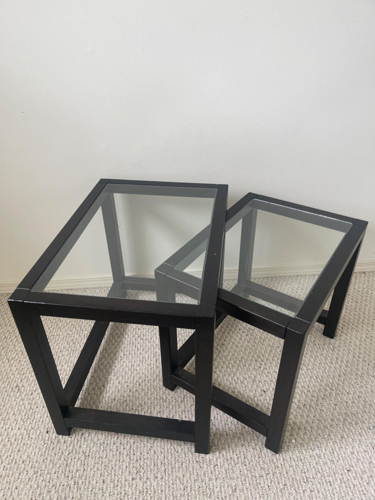 Lot # 73 - Black Painted Wood Glass Top Nesting Tables