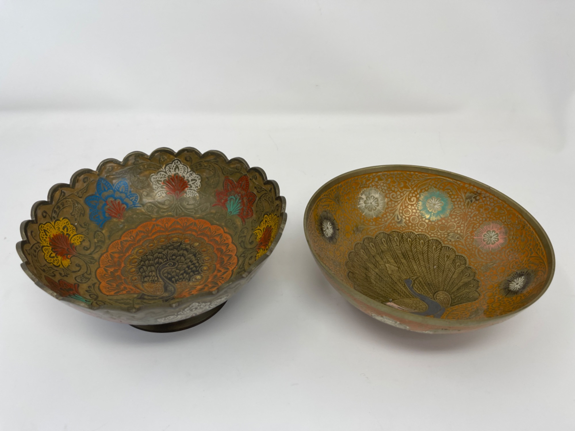 Bowl with leafed edges: 6 inche x 2.5 inches Orange bowl: 6 inches x 2.25 inches
