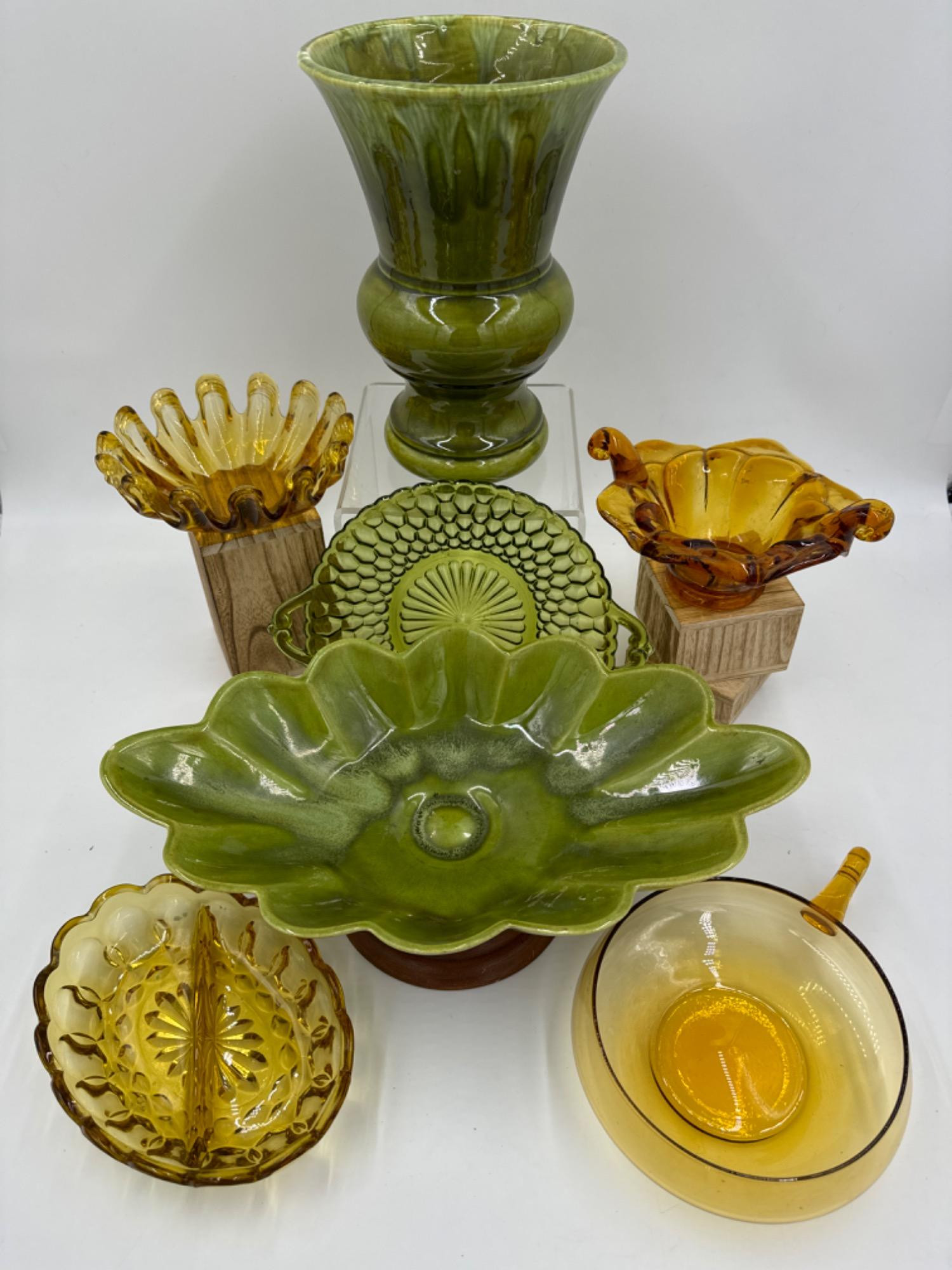 Lot # 34 - Vintage Avocado & Amber - Empoli, Indiana Glass