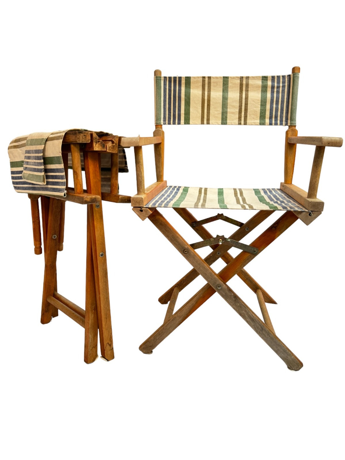 Lot # 40 - Vintage Teak & Striped Canvas Director Chairs