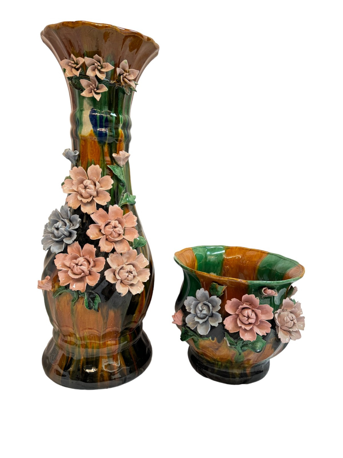 Lot # 65 - HUGE Vintage Barbotine Majolica Ceramic Vase & Planter