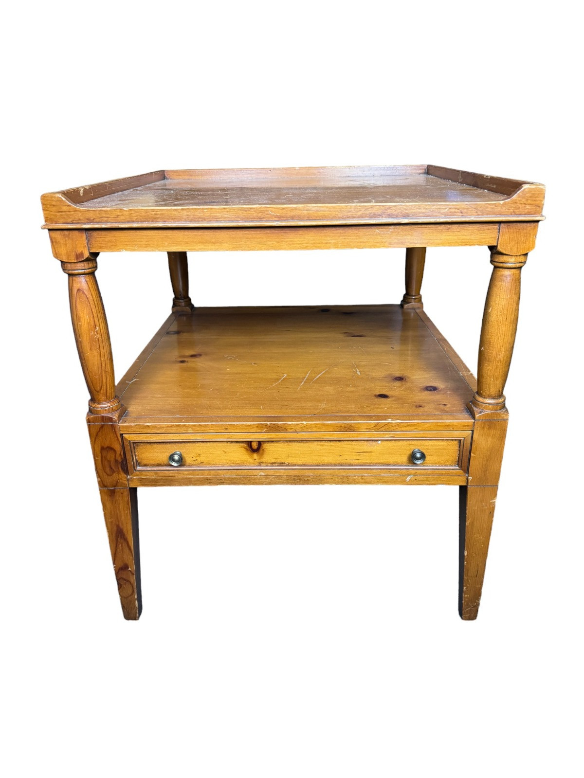 Vintage Brandt Solid Wood Nightstand / Side Table Project piece - Covered in scuffs. Structurally sound. Solid wood with veneer. Table measures 22.25"W x 23.25"D x 25.5"T