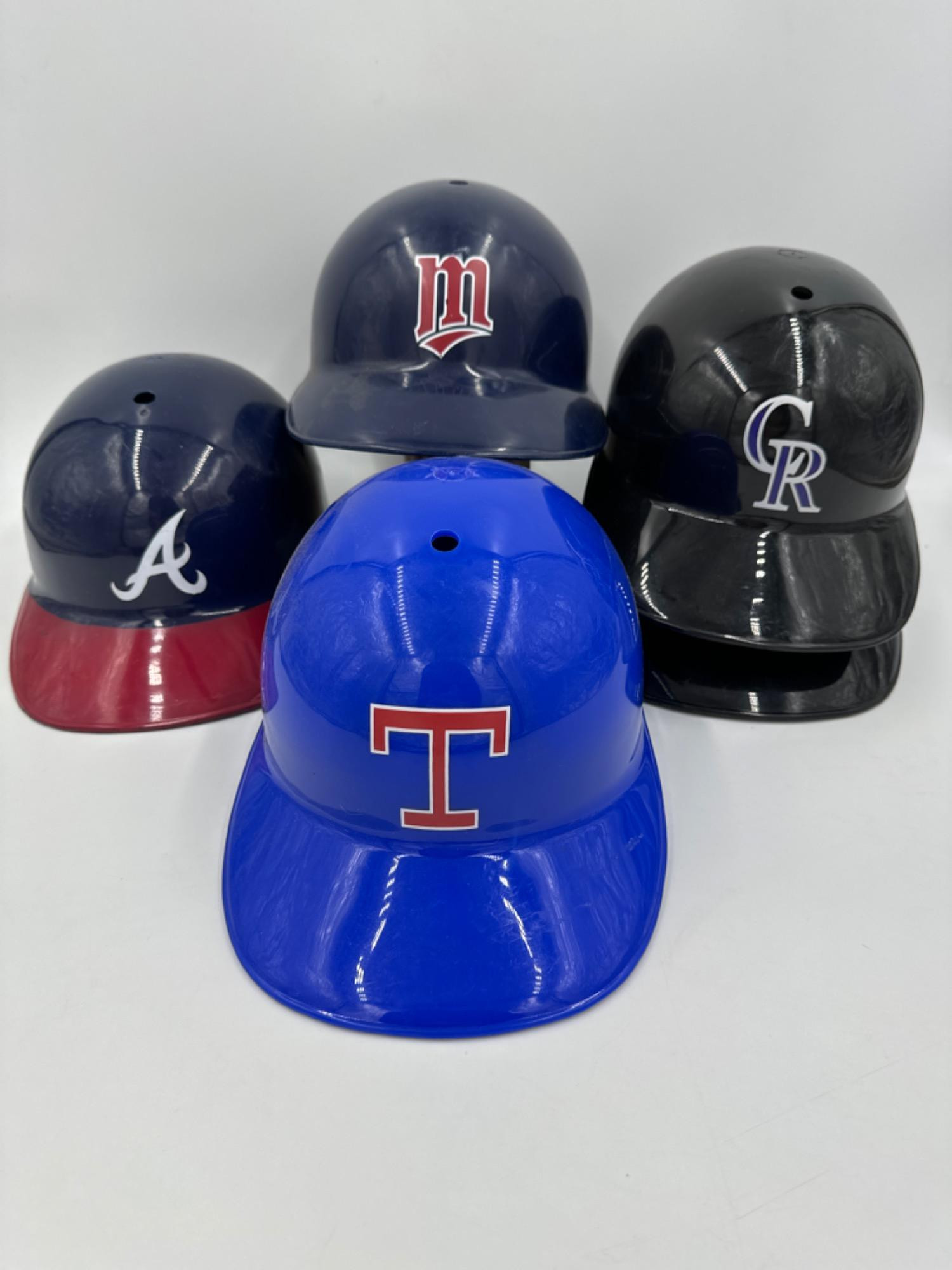 Vintage wearable Lrich Plastic Baseball Batters Helmets (5) Collectible baseball helmets Two have cracked size adjusters