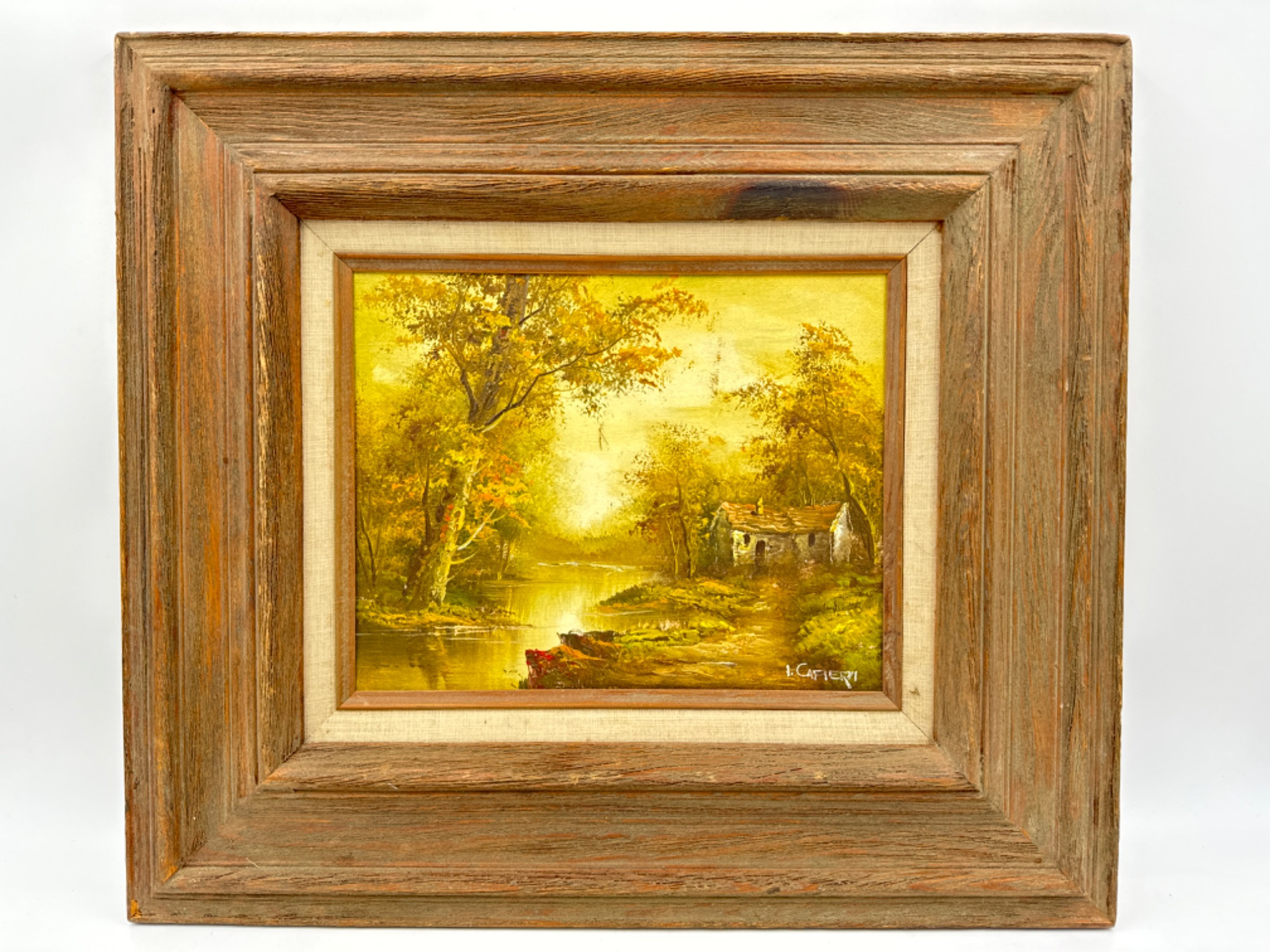 Vintage I. Cafieri Original Oil Canvas Signed Painting Woodland Landscape Natural wood frame measures: 17.75 x 15 7/8"