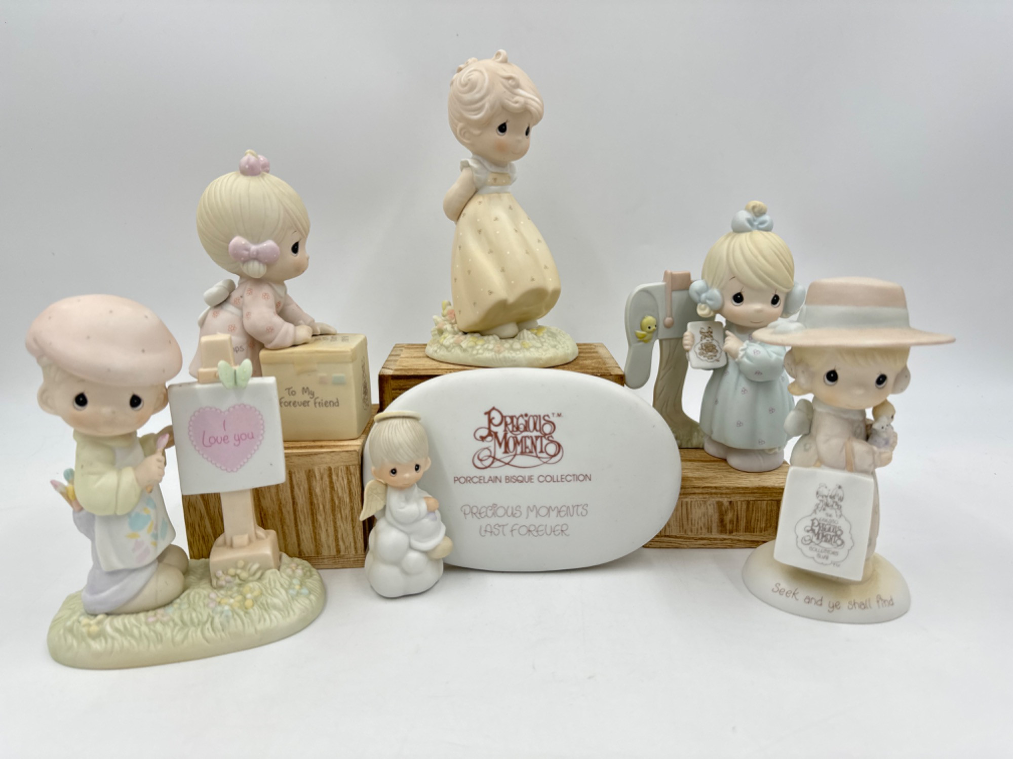 Precious Moments Figurines - No Boxes Wing has been repaired on nameplate. Tallest: 6.5" Shortest: 3.5"