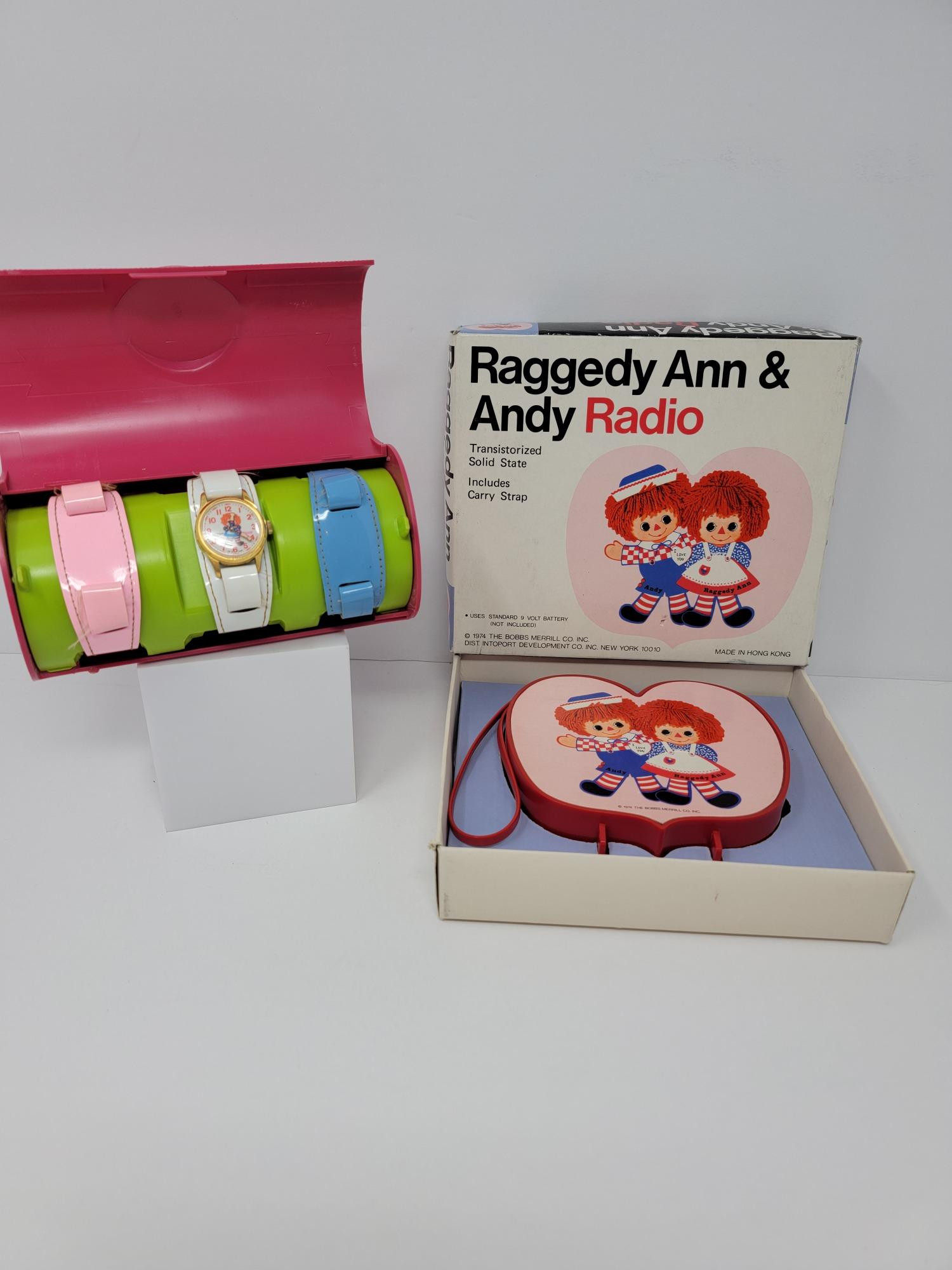Vintage 1974 Raggedy Ann & Andy Radio & Watch Raggedy Ann & Andy Radio comes with original box and warranty watch comes with original case and 2 extra straps
