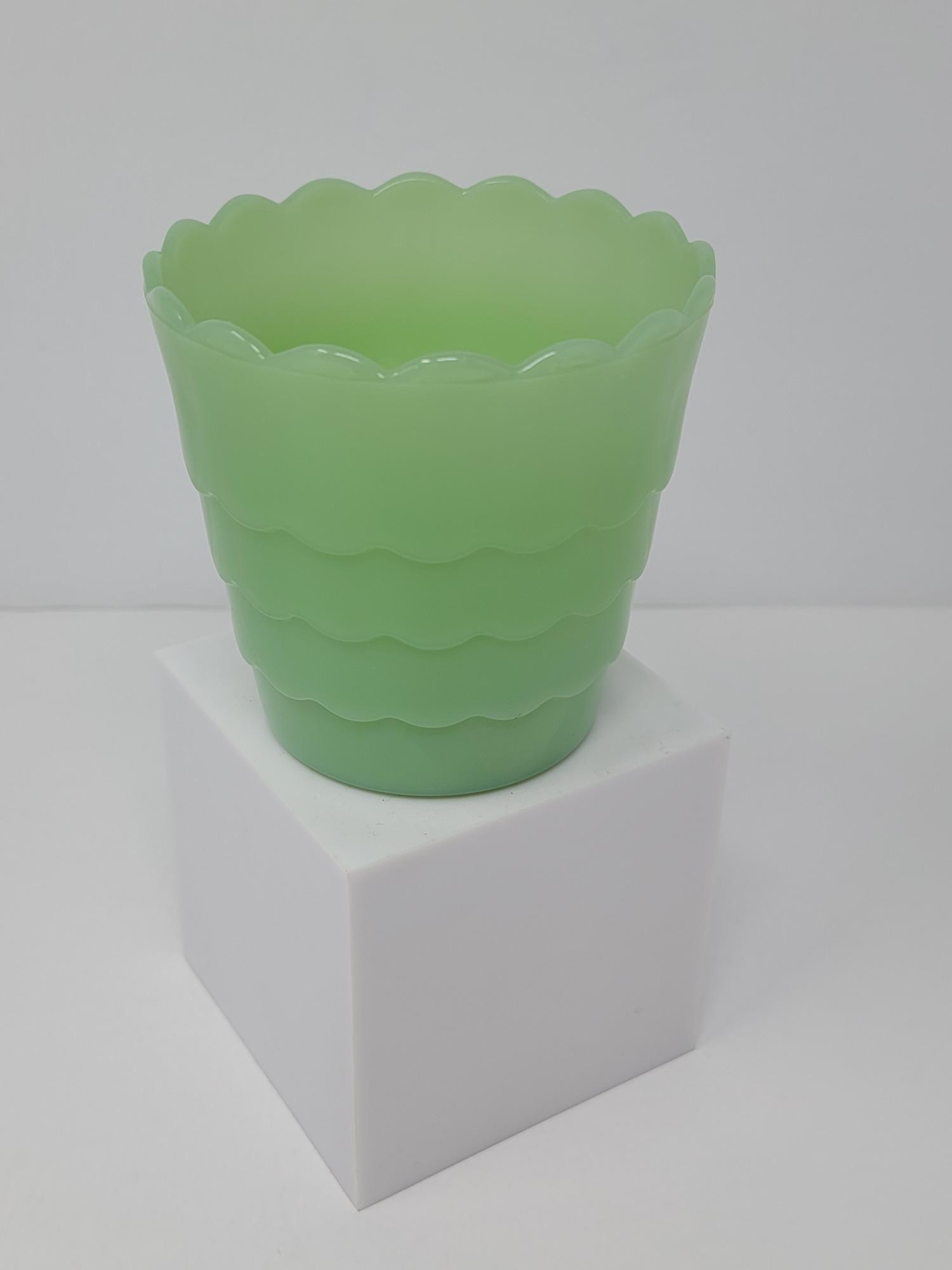 Jadeite Fire King Scalloped Planter Vase Measures 3.5" x 3.5"