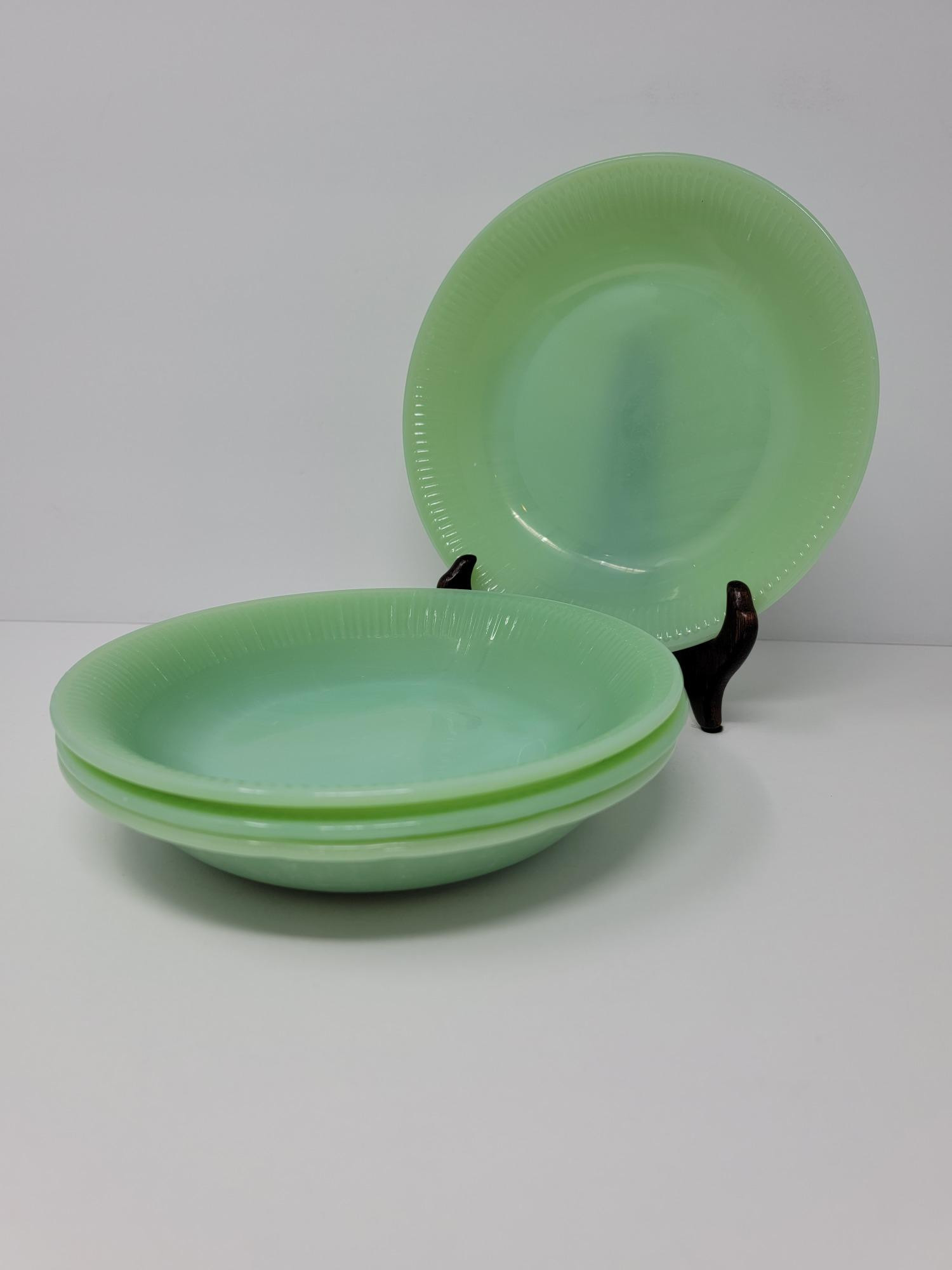 Jadeite Fire King Soup Bowls (4) Each soup bowl measures 7.5" x 1.25"