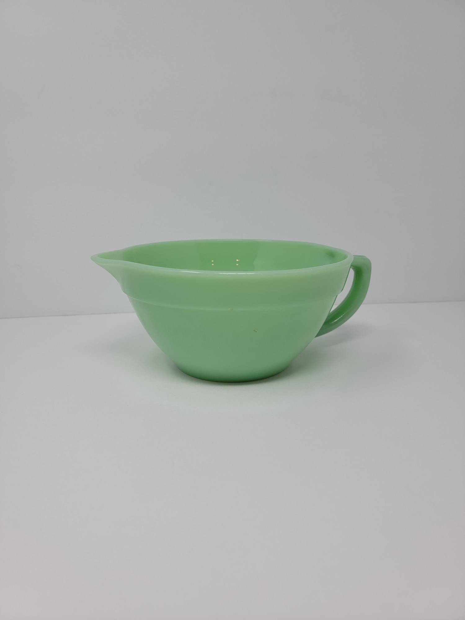 Jadeite Fire King Batter Bowl Measures 9.5"(including handle) x 3.75"T