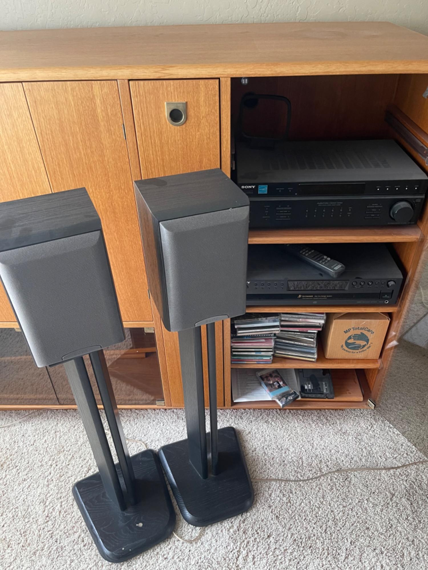Sony Audio/Video Stereo System & Two Sony Bookshelf Speakers with Stands CDs/DVDs Included