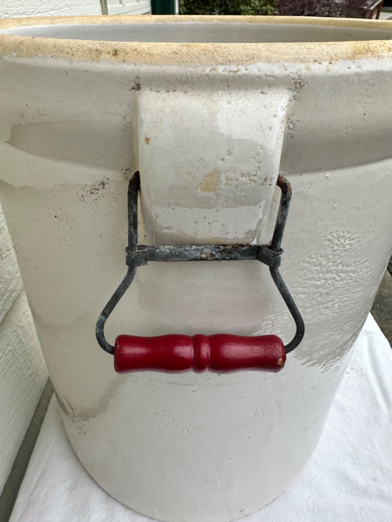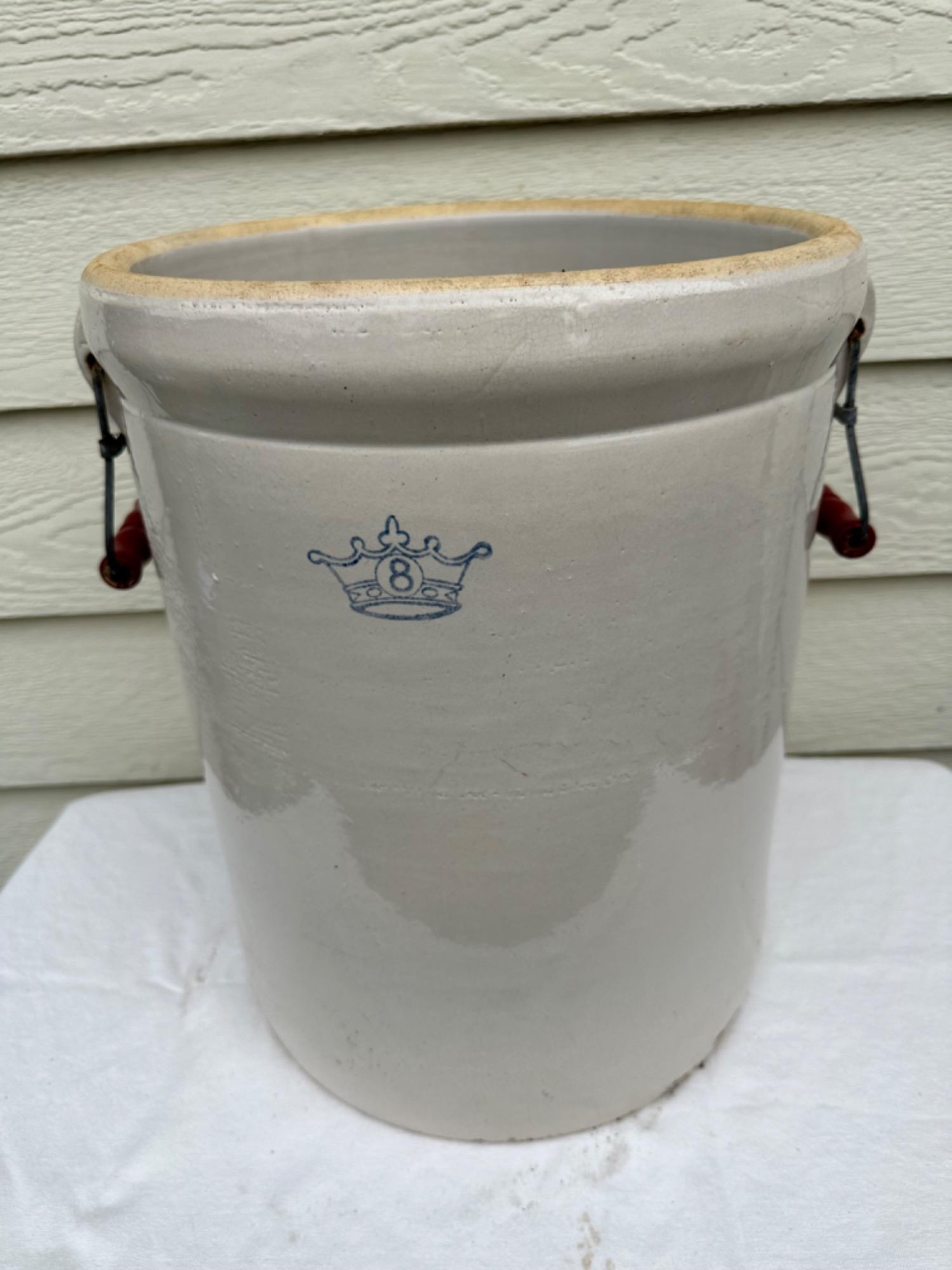 Antique Stoneware 8 Gallon Crock With Handles 17 T x 13.5 W.