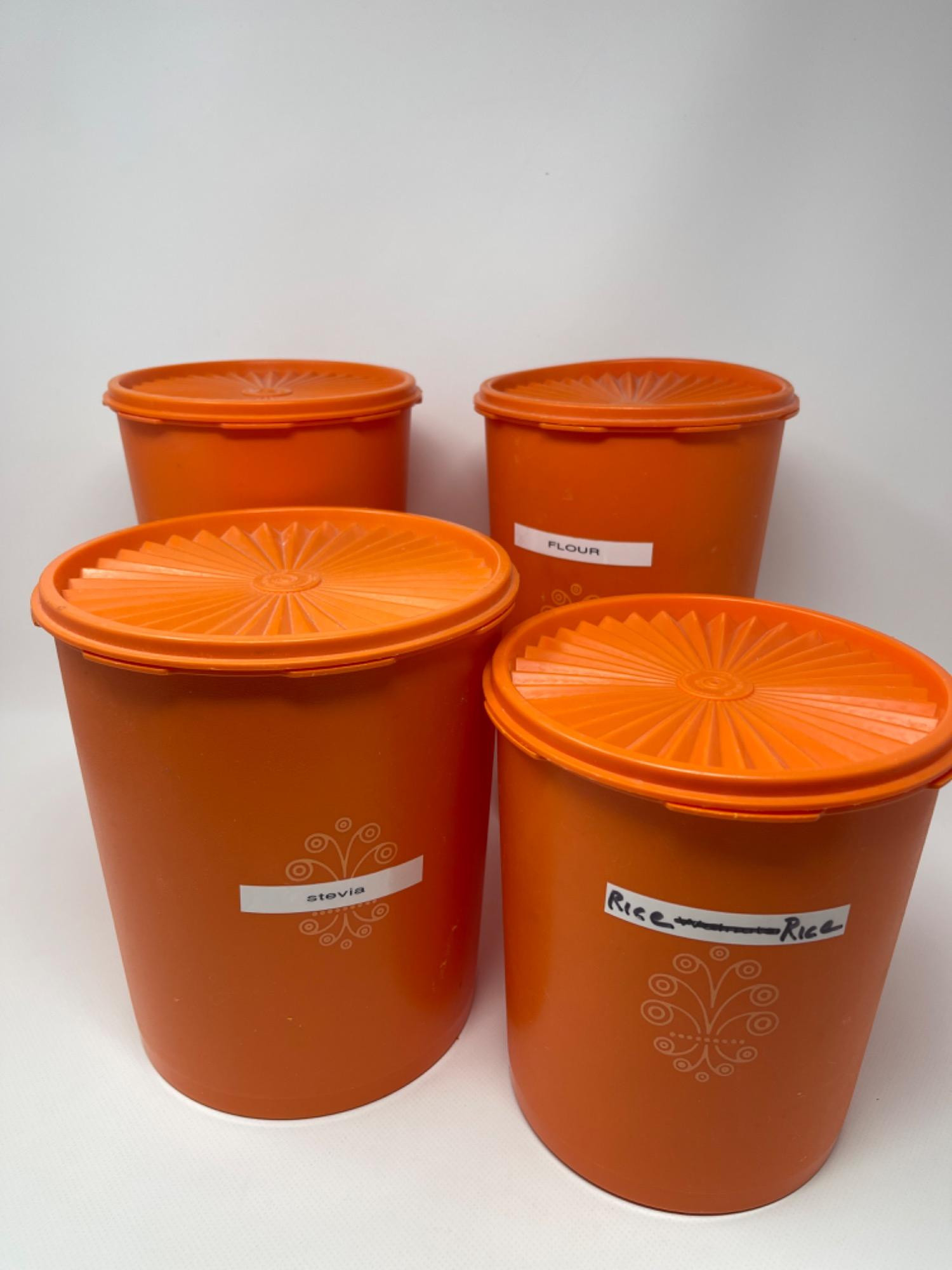 Vintage Orange Tupperware-4 Canisters, Good condition, all have lids. 11 T - 8.5 T