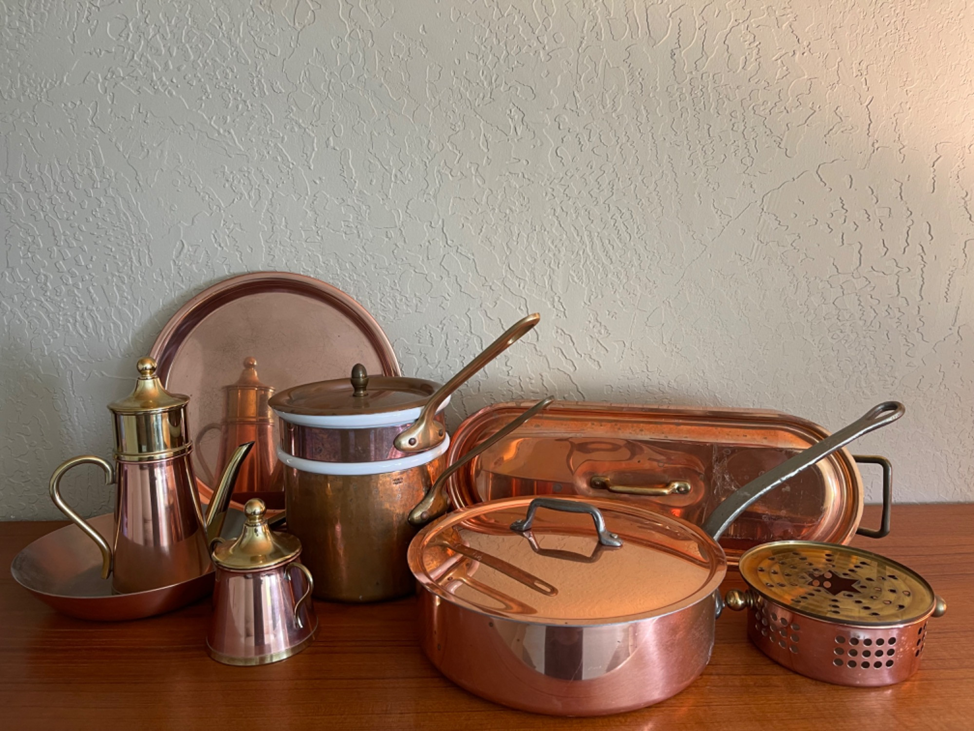 Copper Cookware-Fish Kettle, Paul Revere Pans, Double Broiler and More lidded fish roaster- 18" long Double broiler french- 7 x 7