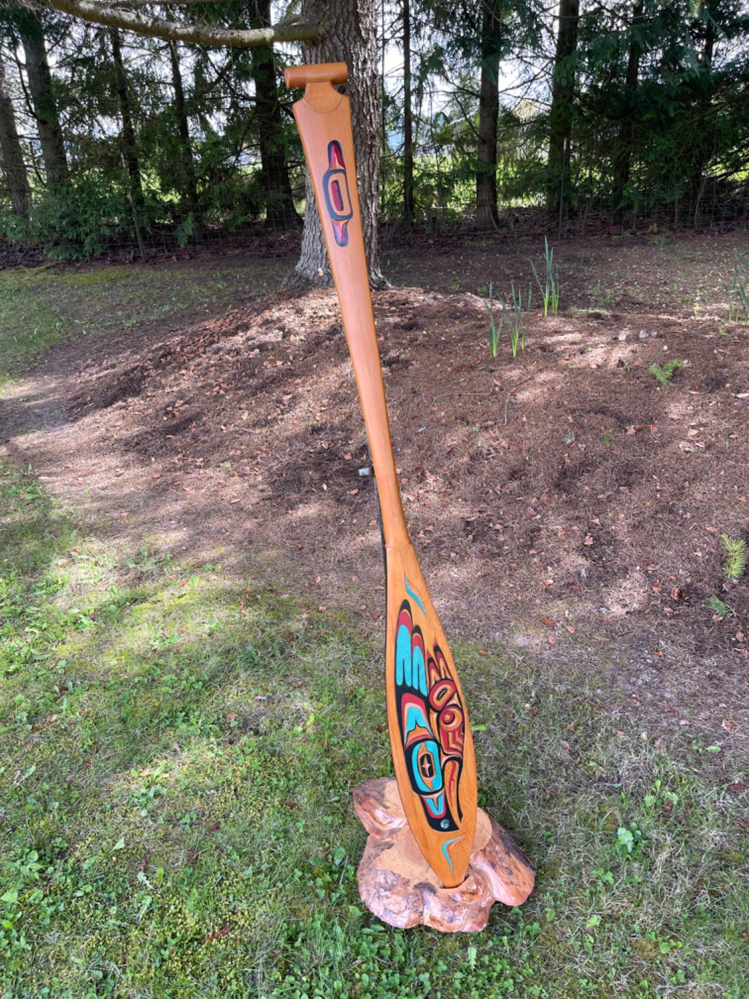 Lot # 54 - Signed Colin Cunningham 2005 Totem Oar On Burl Wood Stand